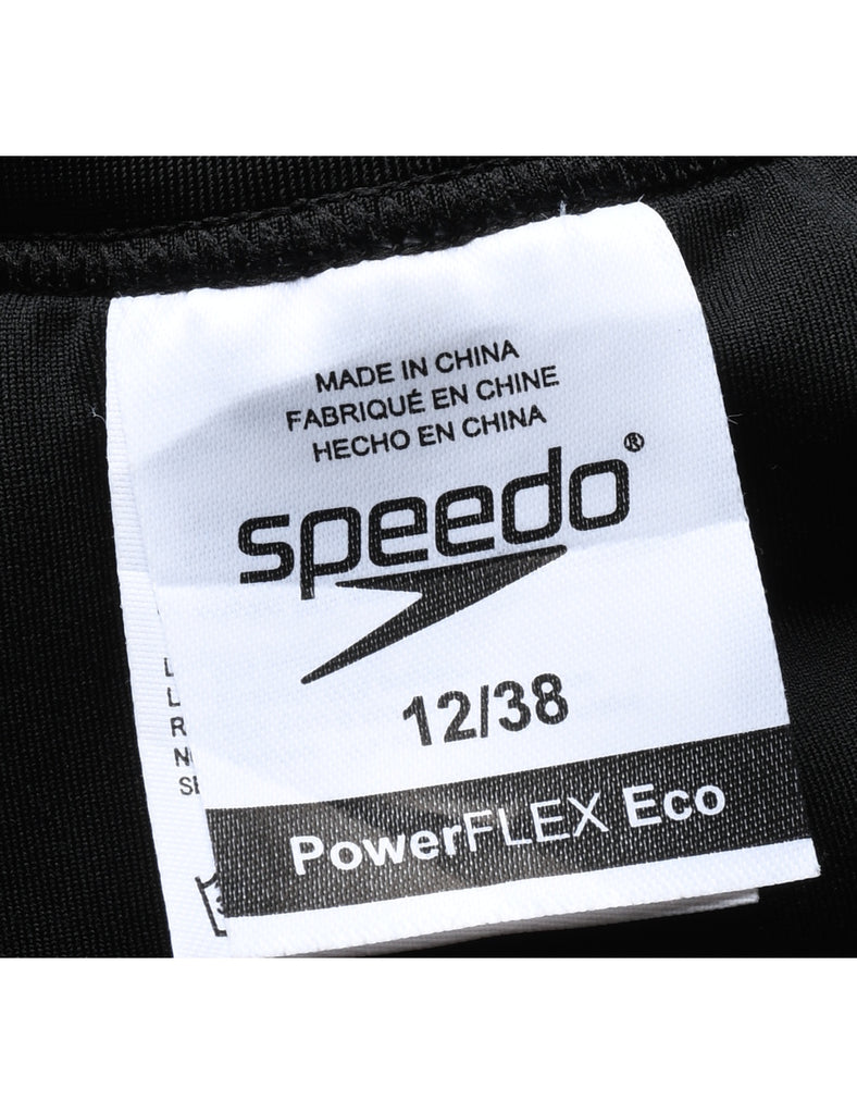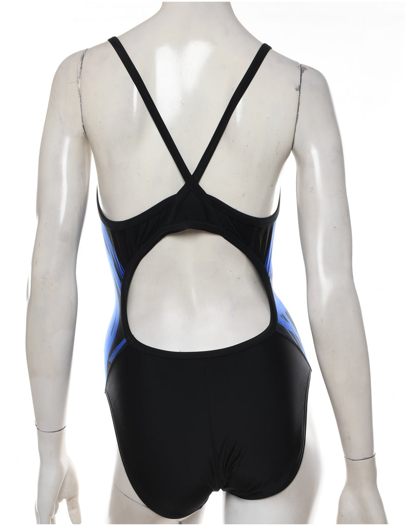 Belted one-piece swimsuit in blue & black complete with a cut-out back.