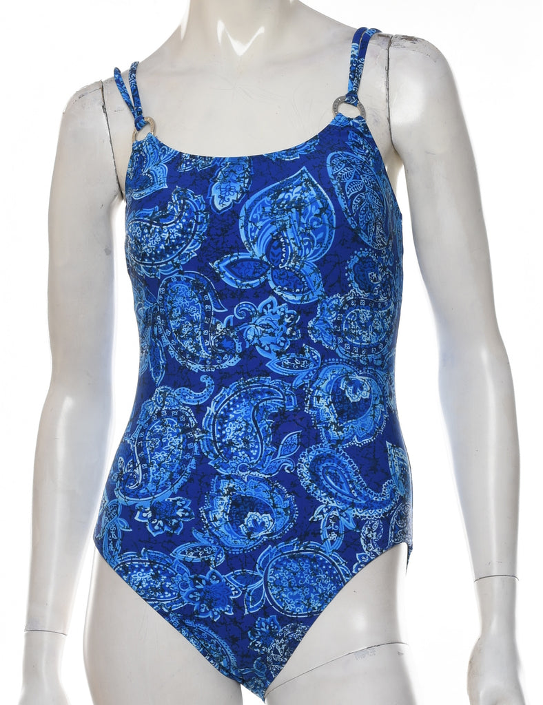 Paisley one-piece swimsuit. Comes in blue with a built-in-bra.