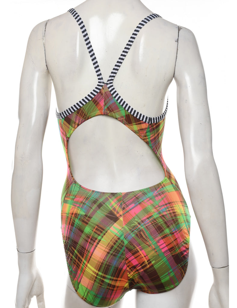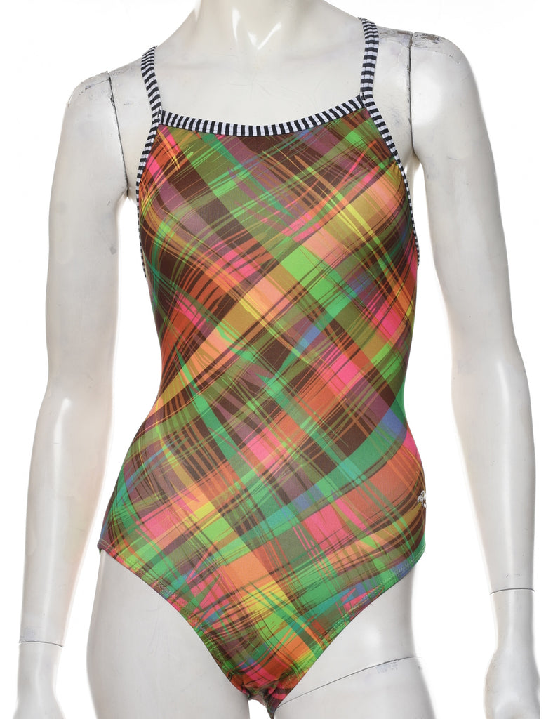 Checked one-piece swimsuit. Comes in multi-colour with a square neck and full lining.