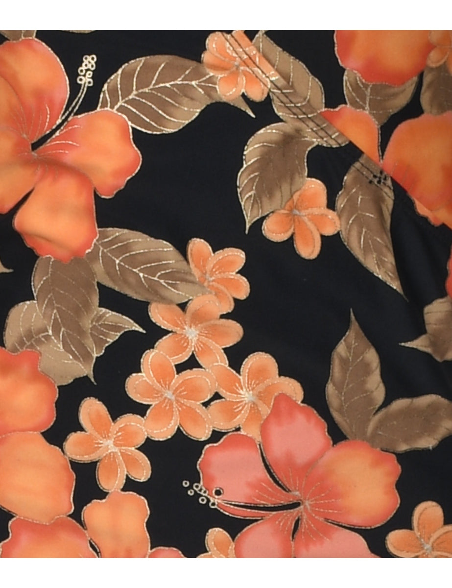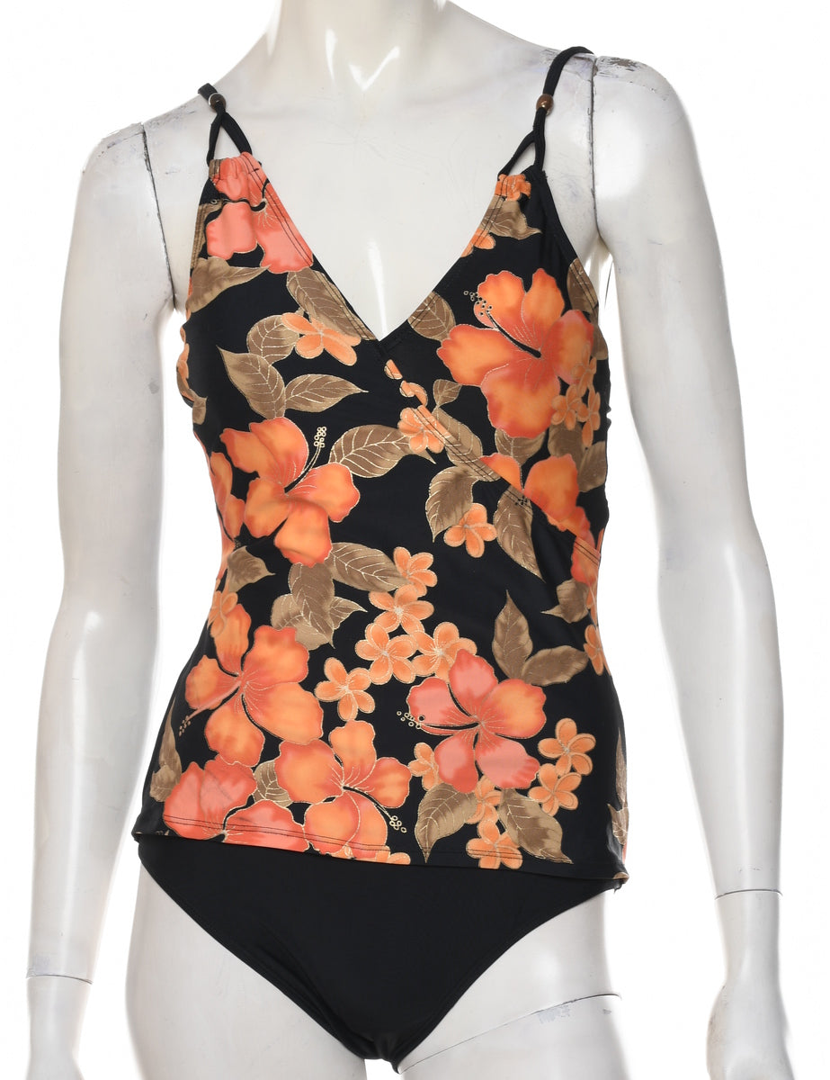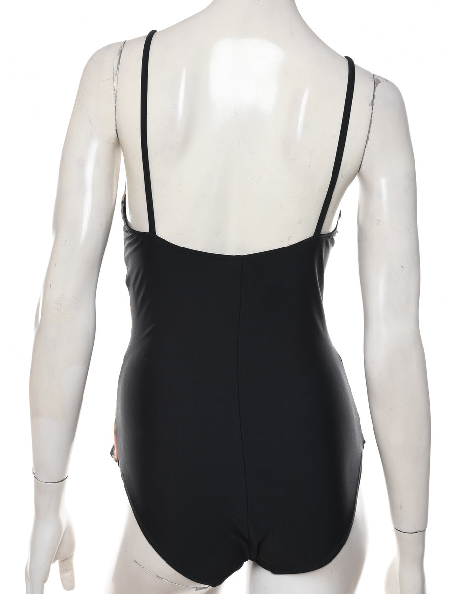 Floral one-piece swimsuit. Comes in black with adjustable straps and a built-in-bra.