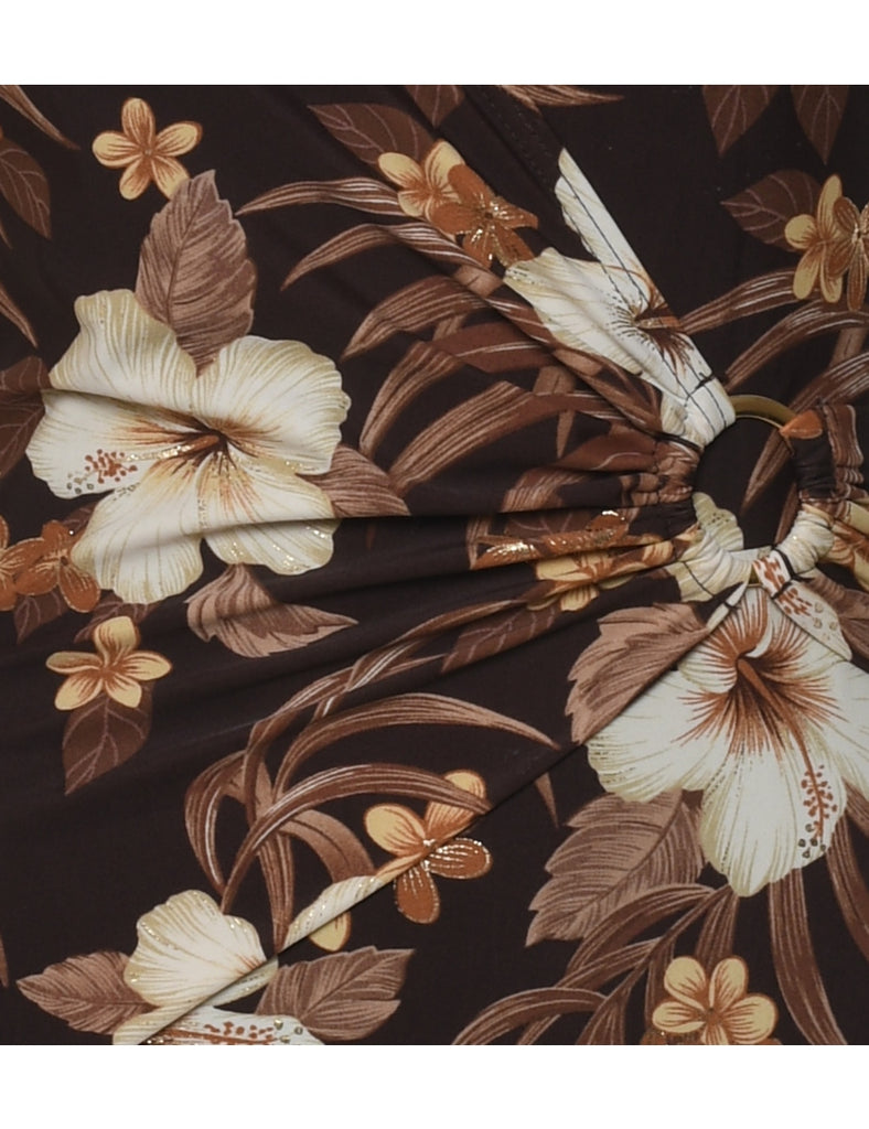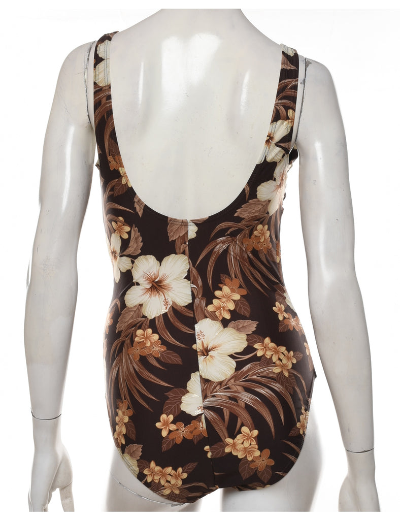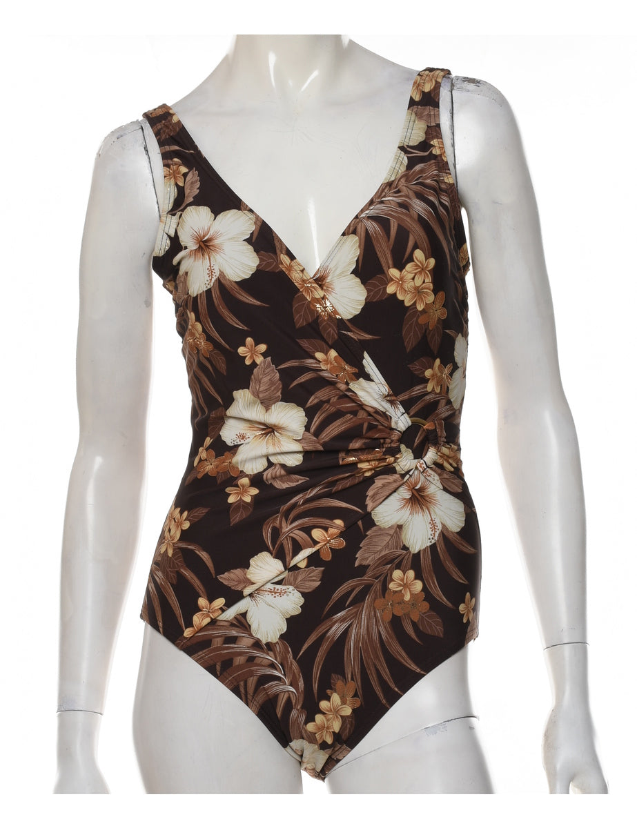 Floral one-piece swimsuit. Comes in dark brown with a built-in-bra.