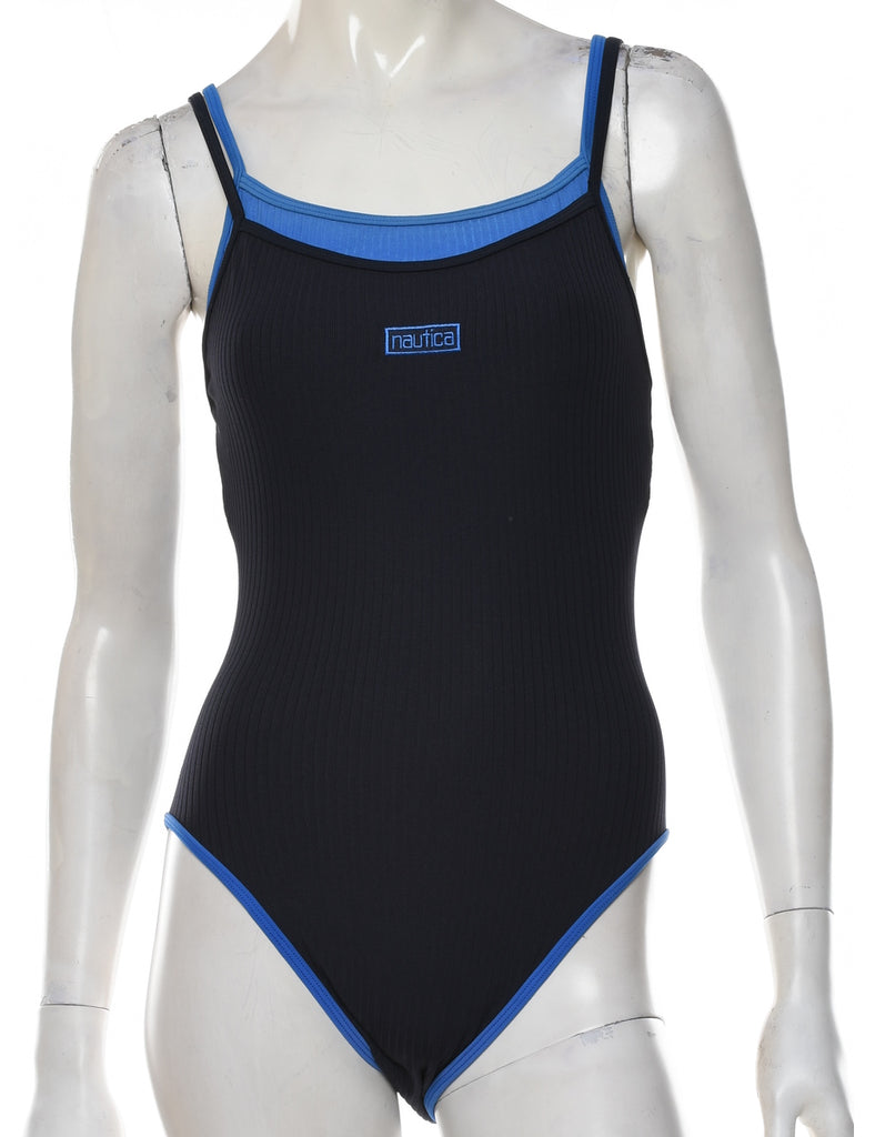 Nautica one-piece swimsuit. Comes in navy with a built-in-bra and contrasting trim.
