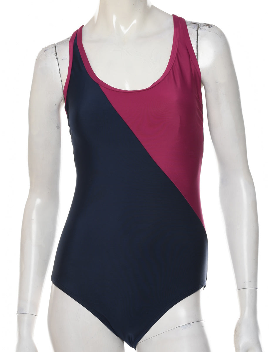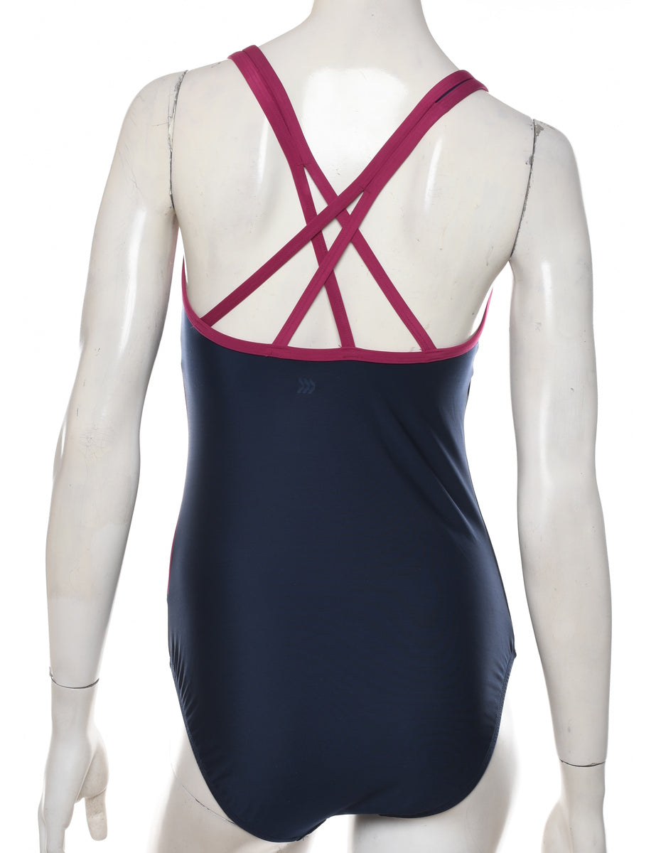 Bold navy & magenta one-piece swimsuit with a criss cross back and full lining.