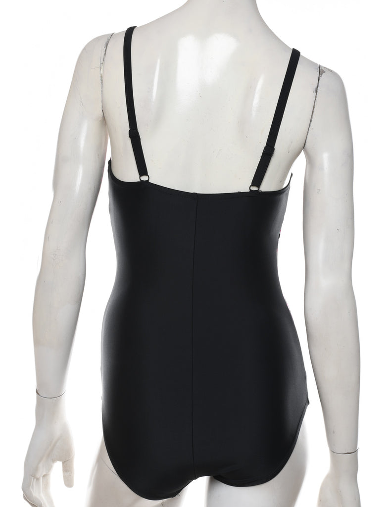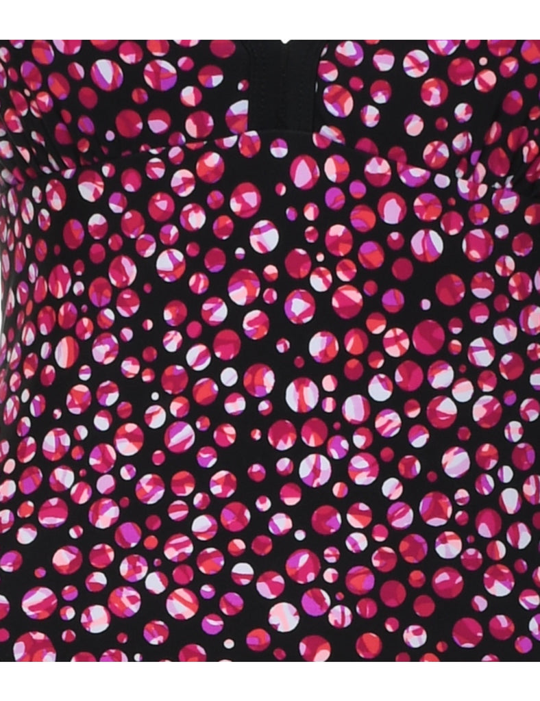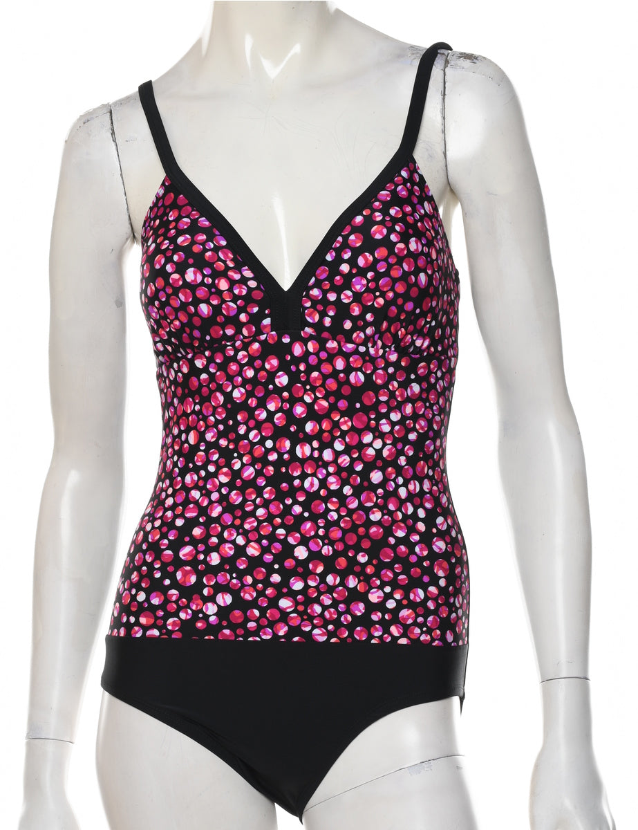 Bold one-piece swimsuit with polka dot. Comes in black & magenta with adjustable straps and a built-in-bra.