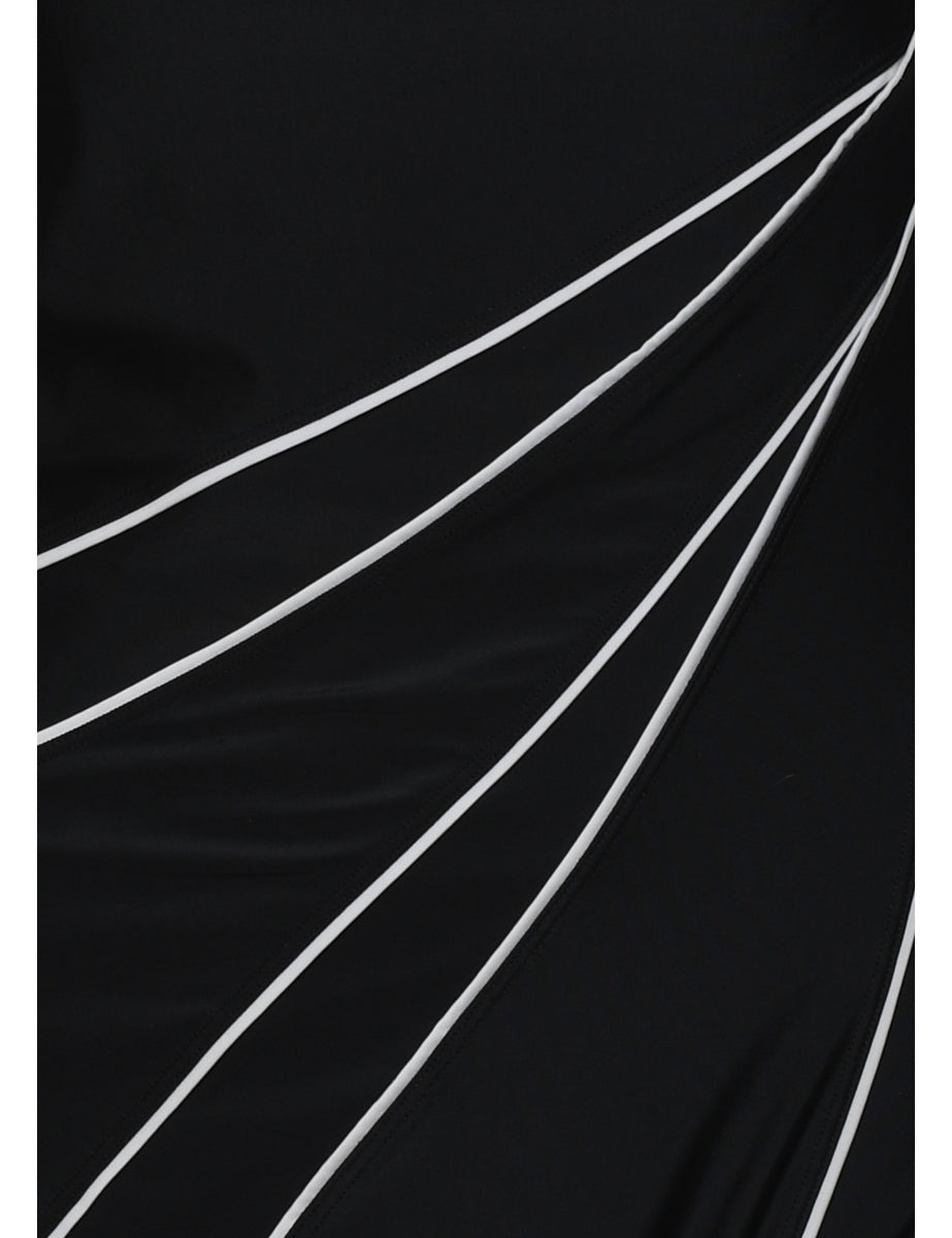 Roots black one-piece swimsuit with a built-in-bra and contrasting trim.