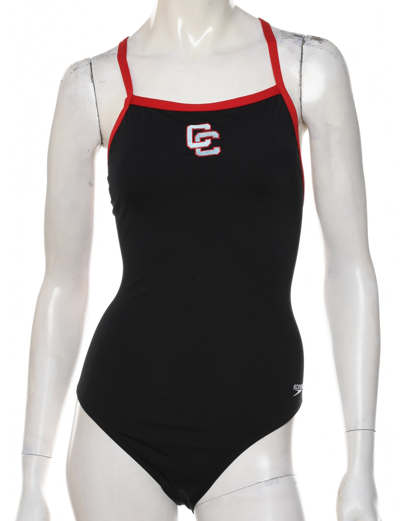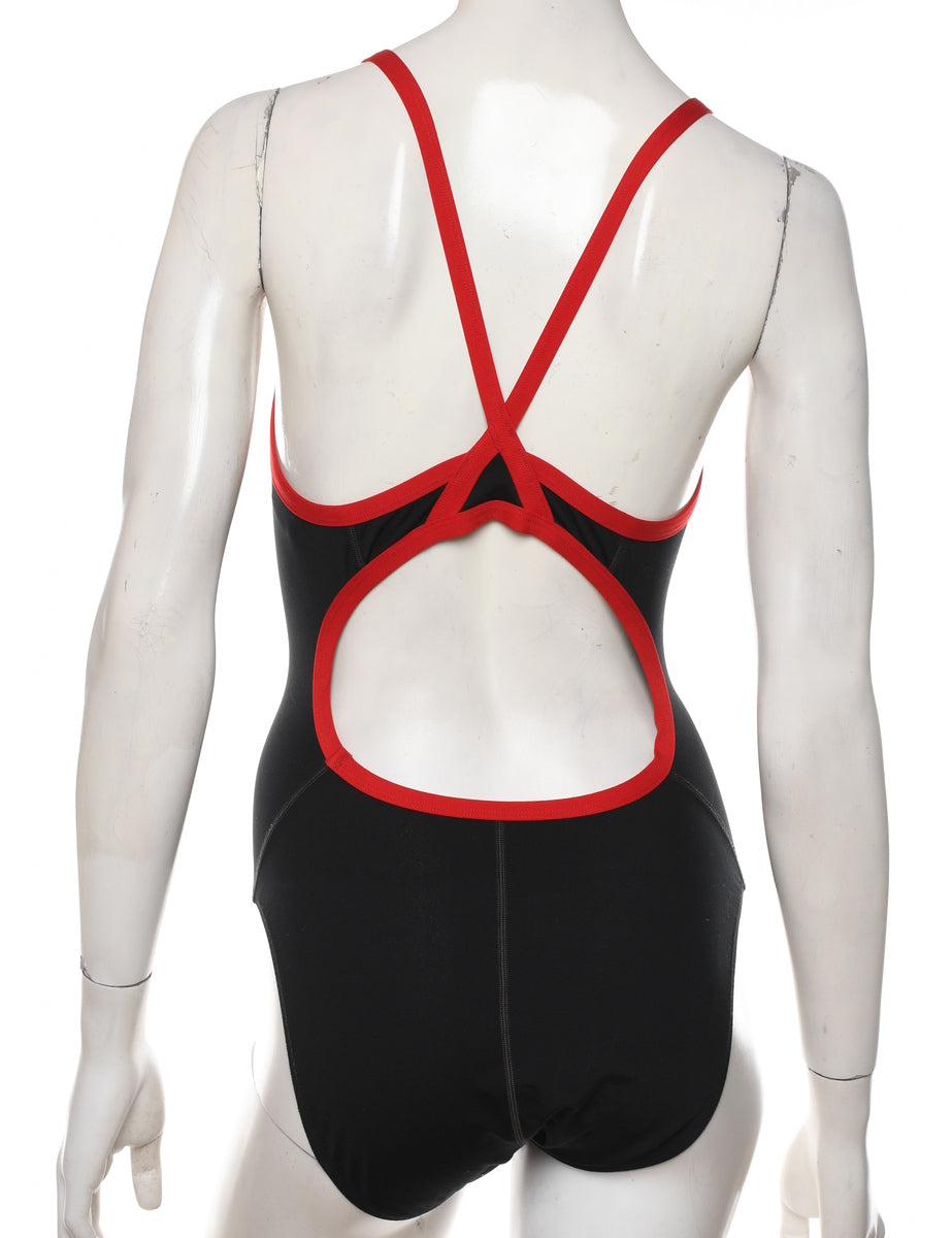 Bold one-piece swimsuit in black with a cut-out back. From the brand Speedo.