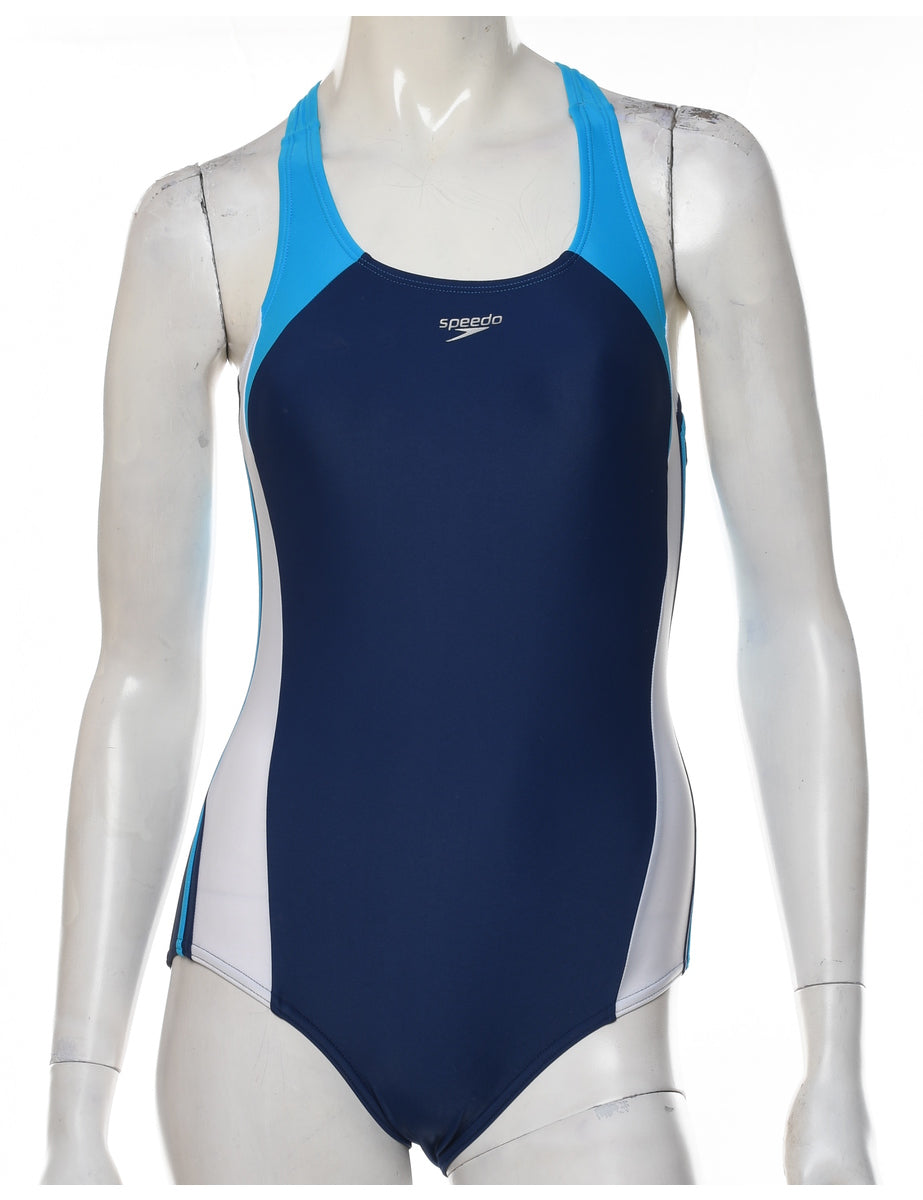 Bold one-piece swimsuit in navy & blue with a cut-out back. From the brand Speedo.