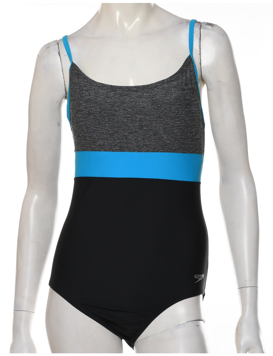 Bold one-piece swimsuit in black & blue with a built-in-bra and contrasting panels. From the brand Speedo.