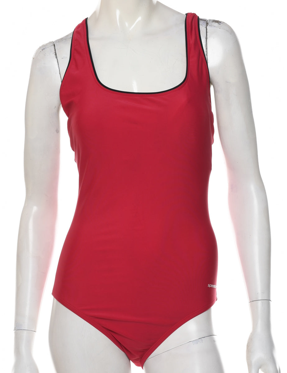 Bright one-piece swimsuit in red with a built-in-bra. From the brand Speedo.