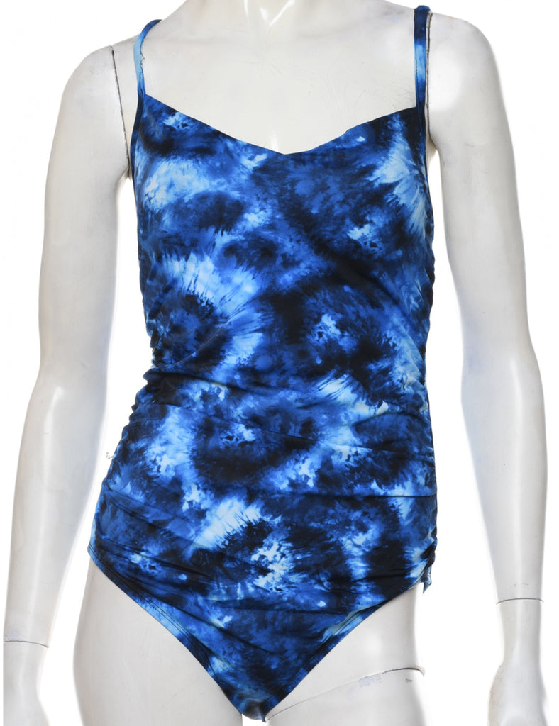 Tie dyed one-piece swimsuit in multi-colour with a built-in-bra.
