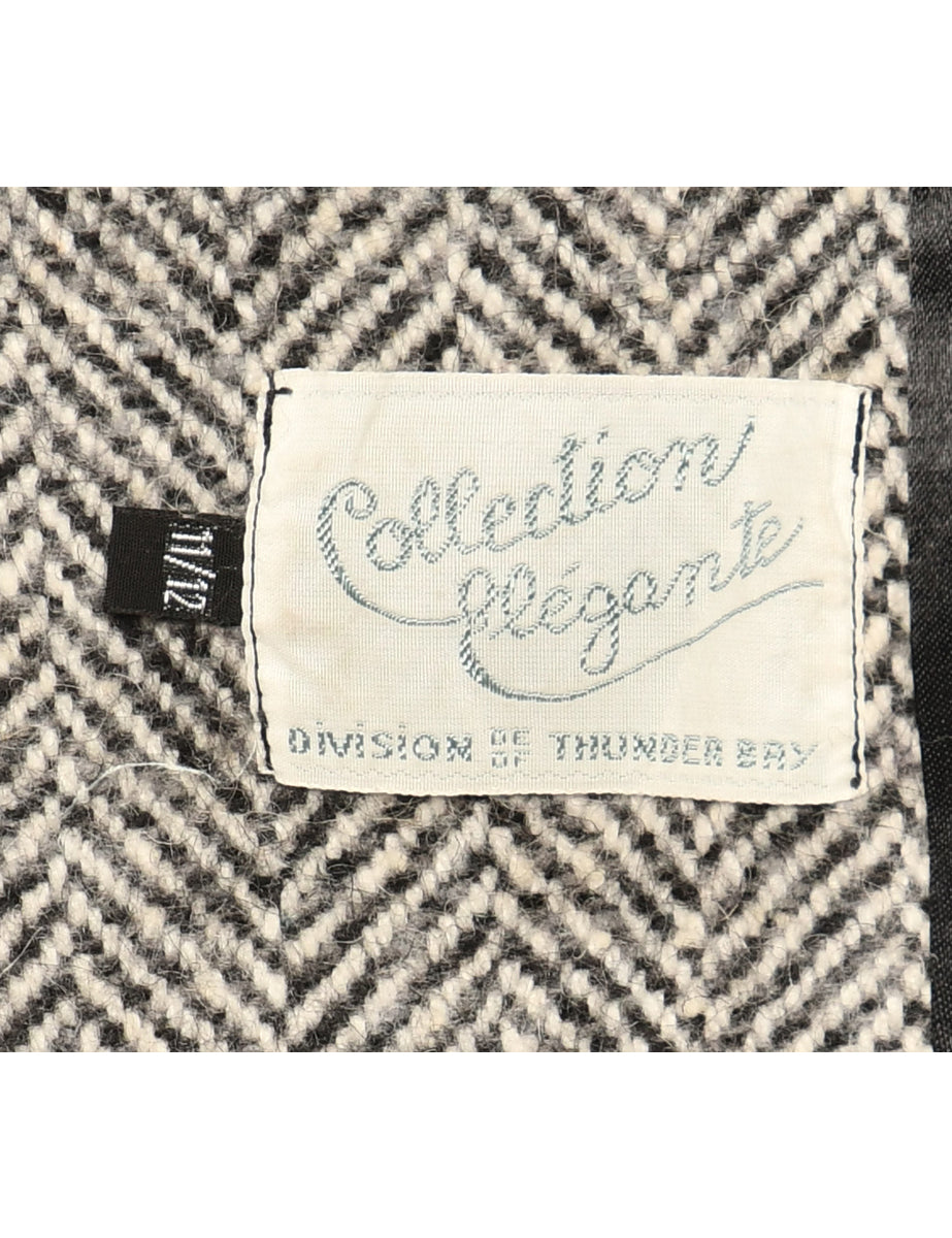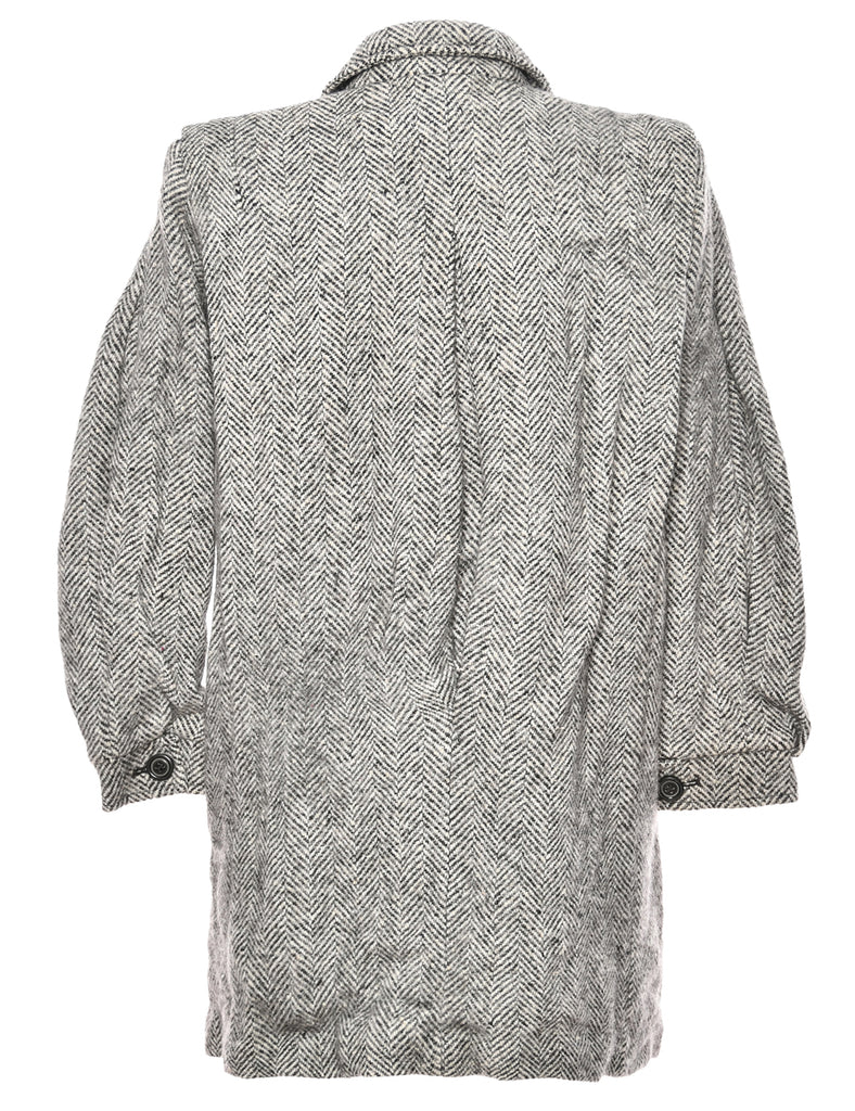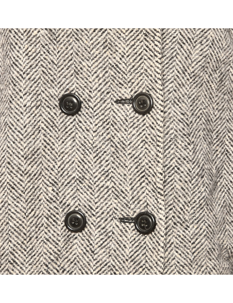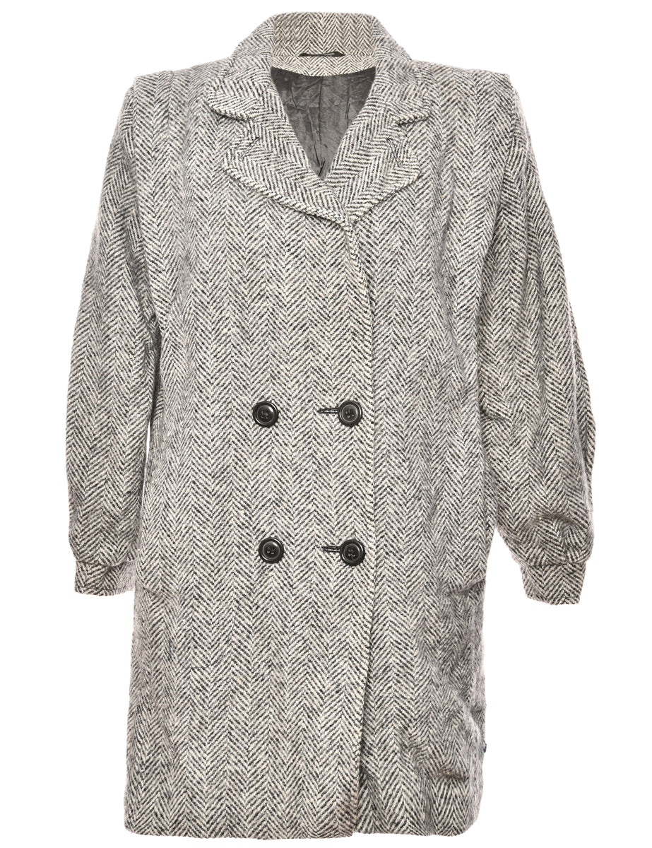 Double breasted black & white herringbone tweed coat complete with multiple pockets.