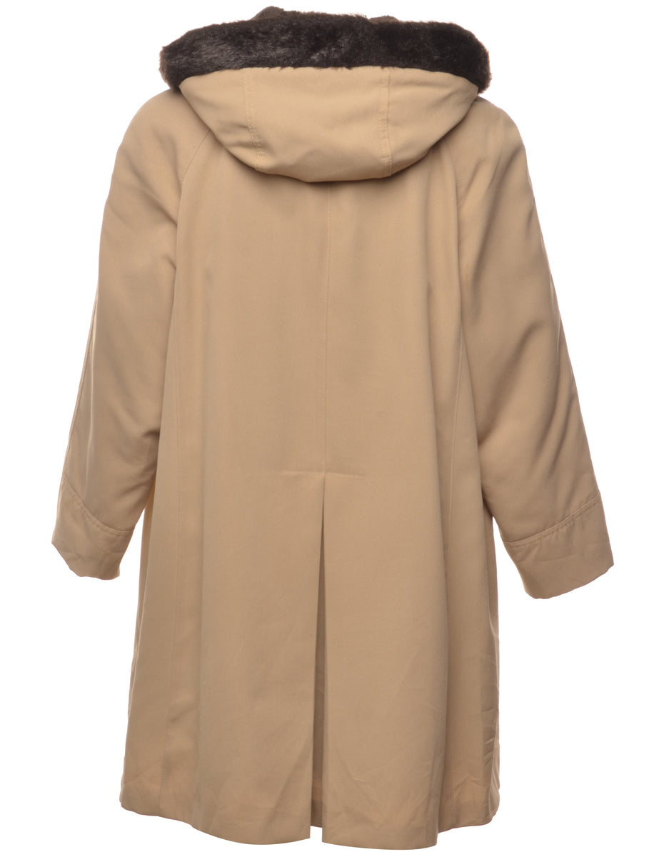 Brown & Beige Hooded Faux Fur Lined Coat - L