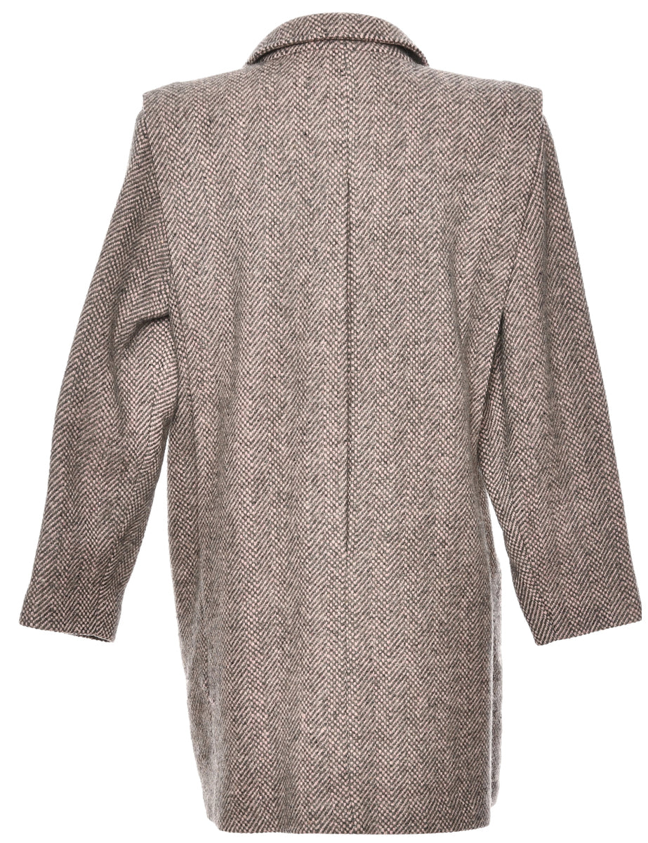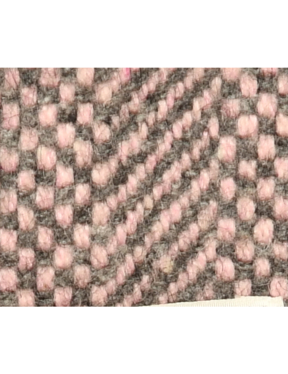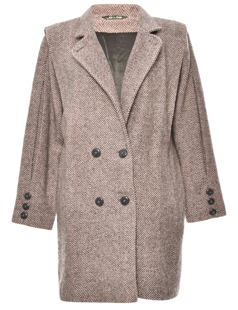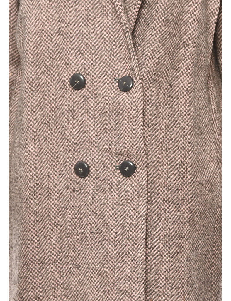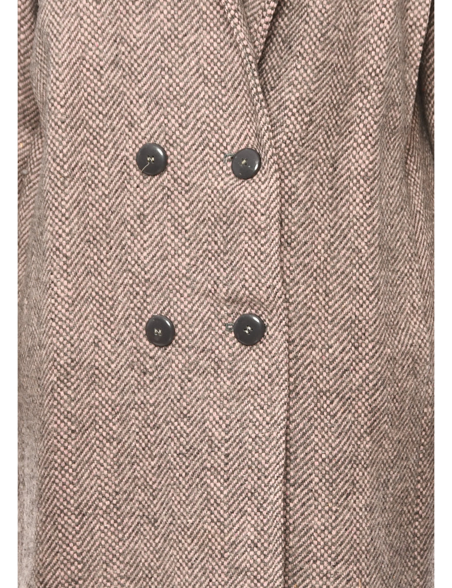 Double-breasted wool coat comes in pink & grey complete with multiple pockets.