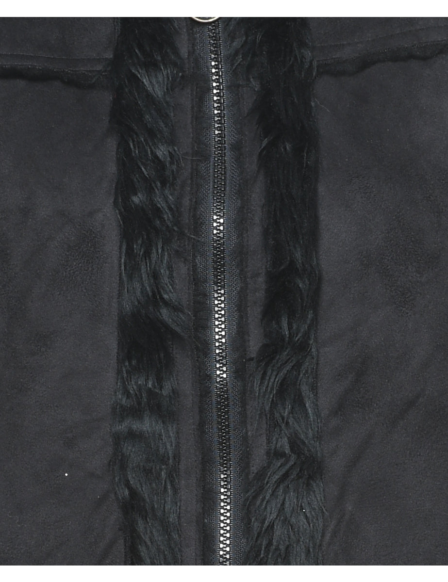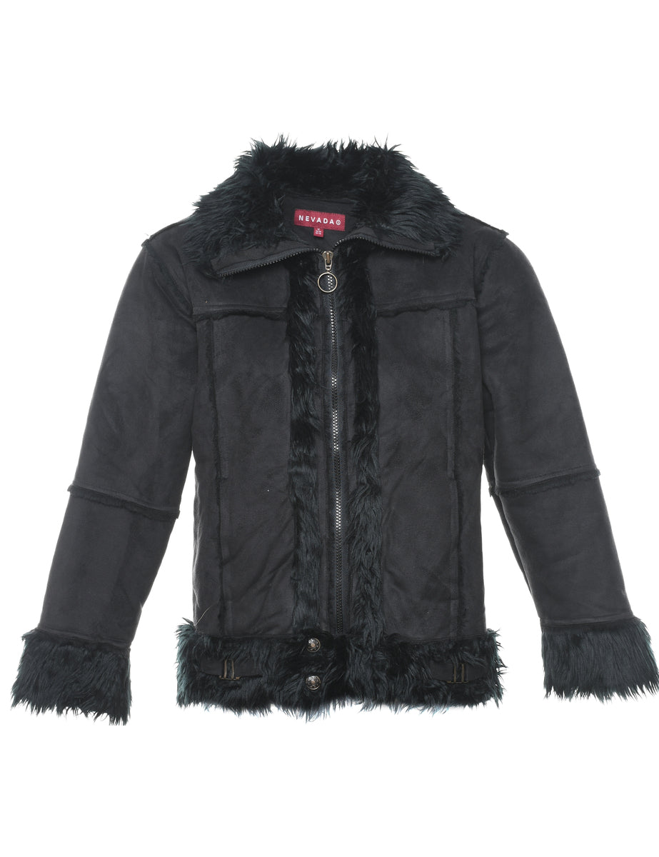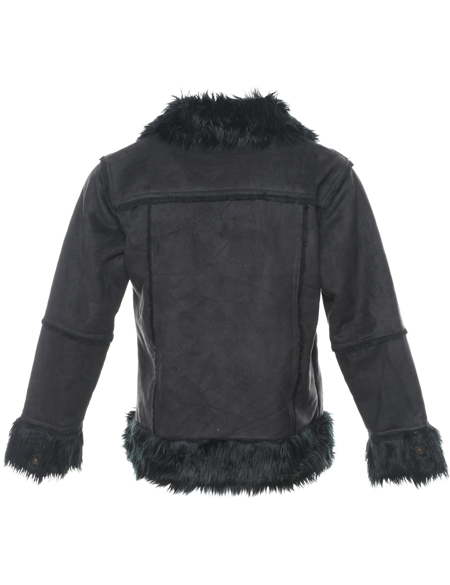 Faux Fur Trim Black Coat - M