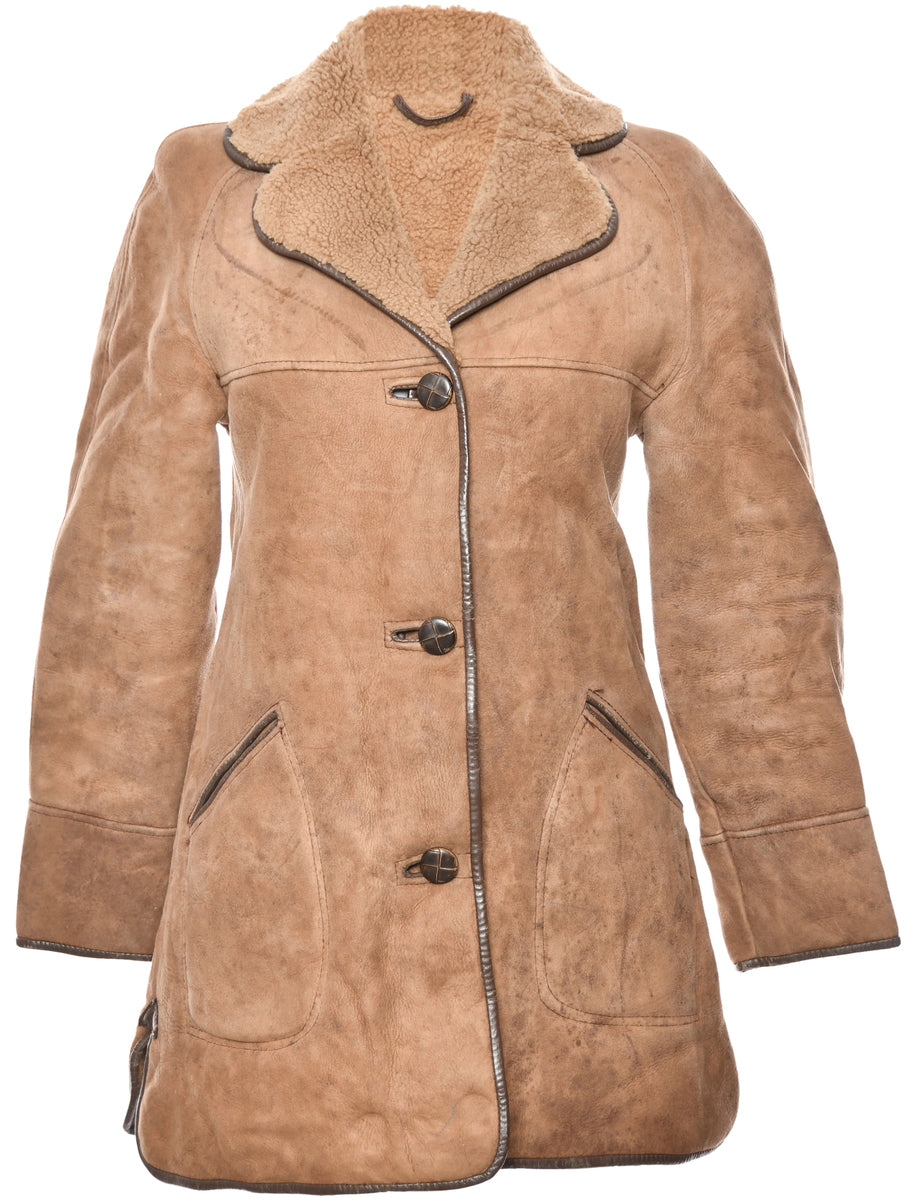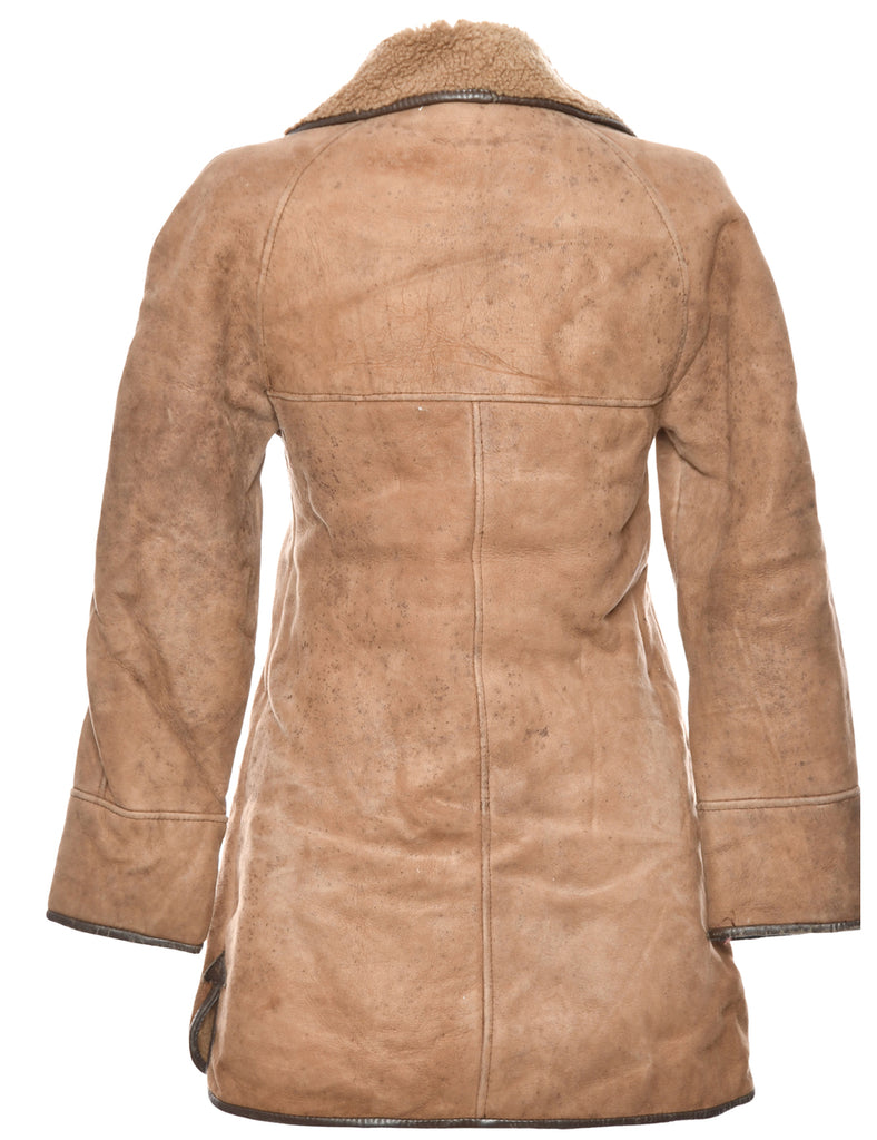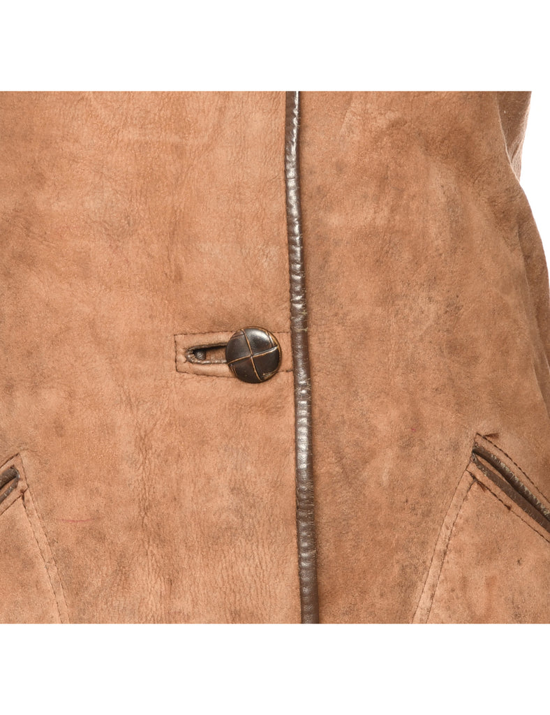 Real Sheepskin Lined Light Brown Suede Coat - M