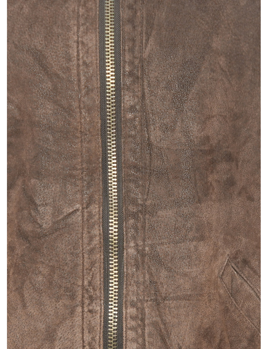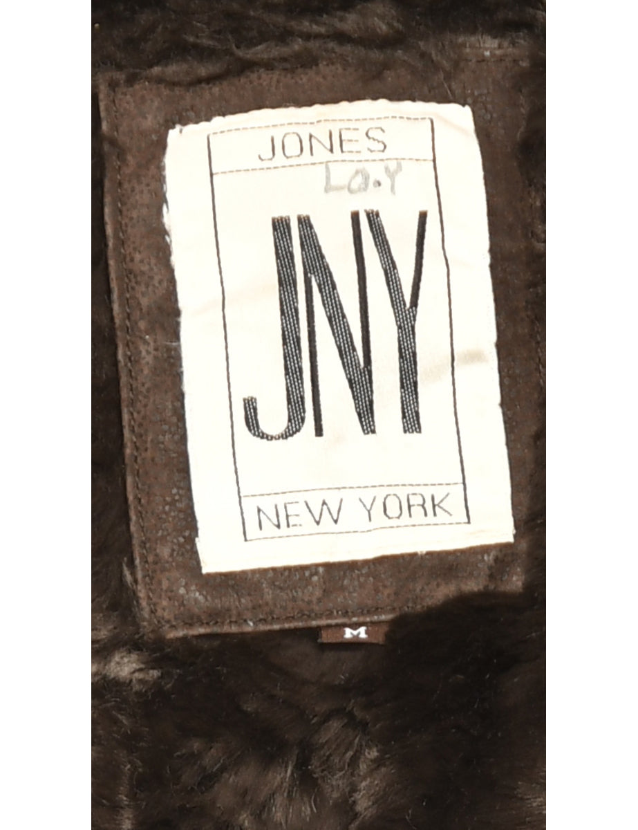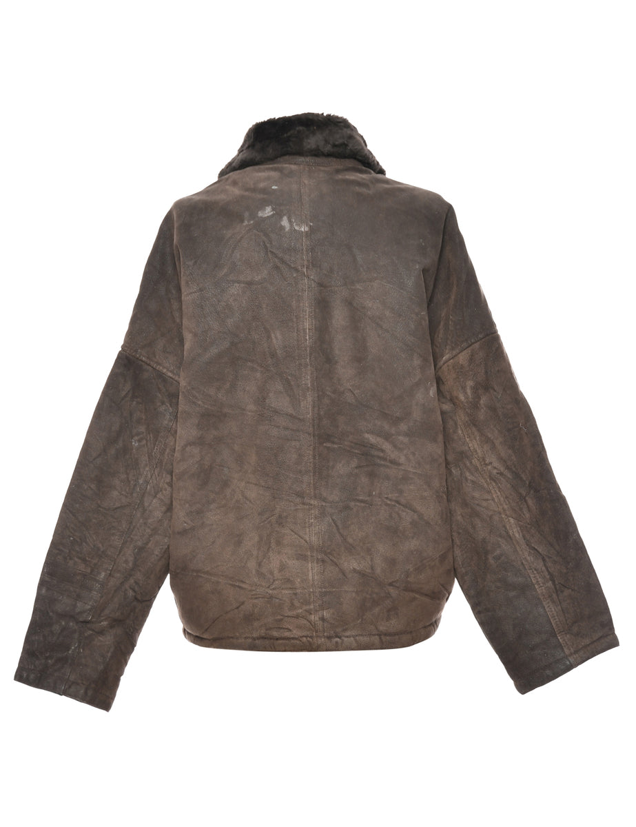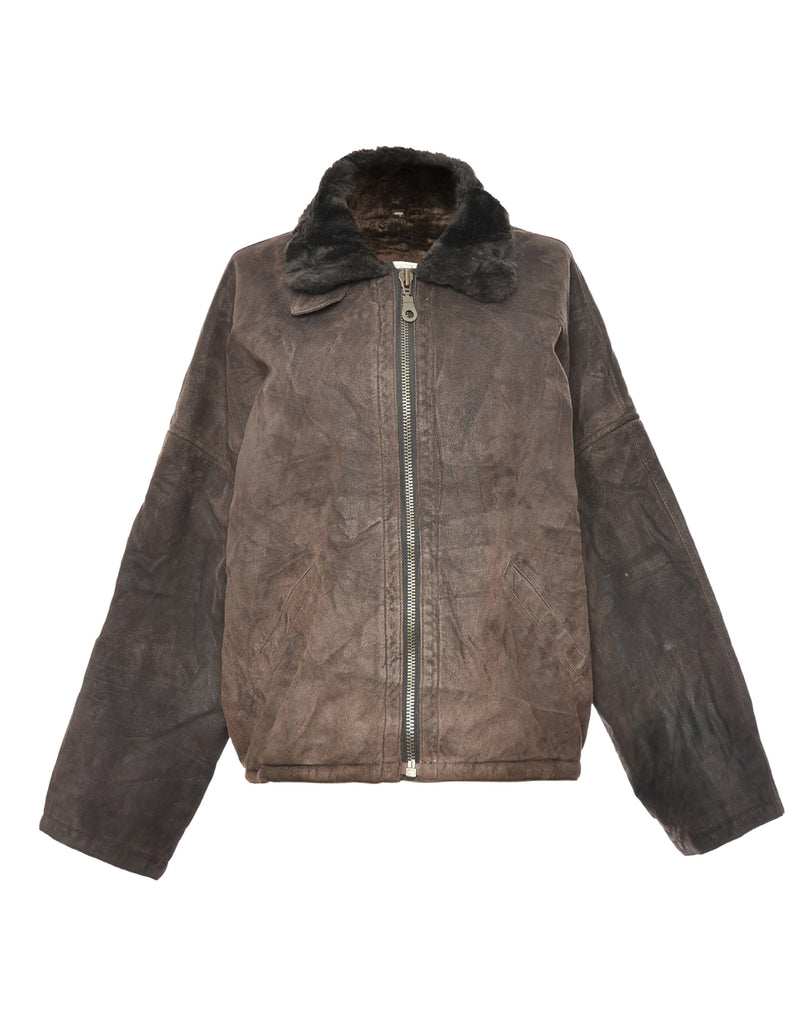 Shearling Lined Dark Brown Leather Coat - L