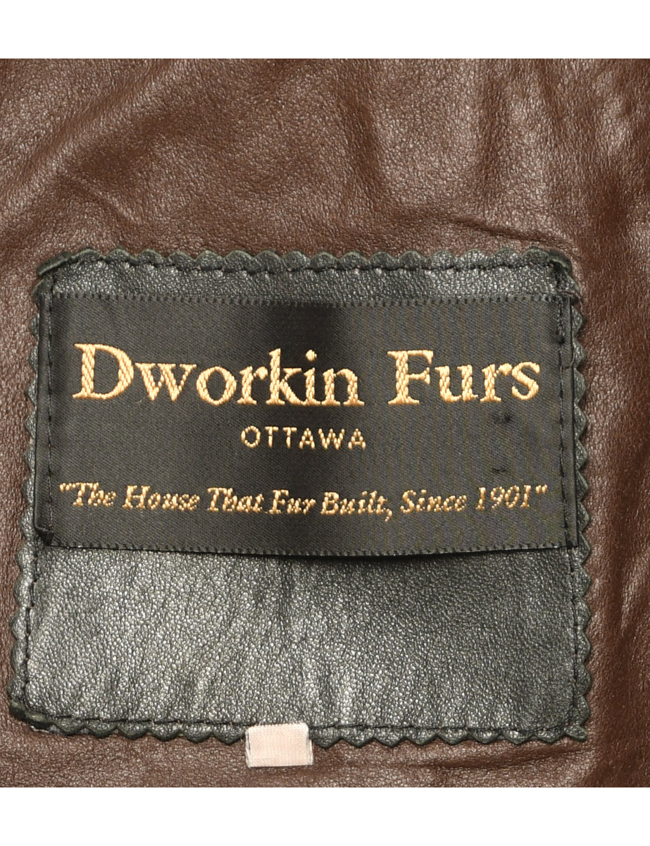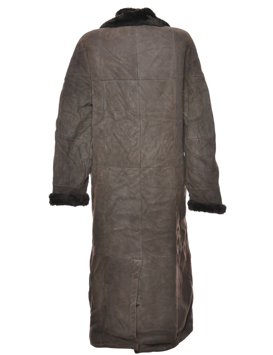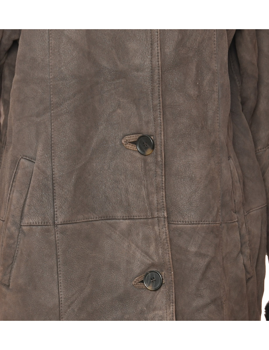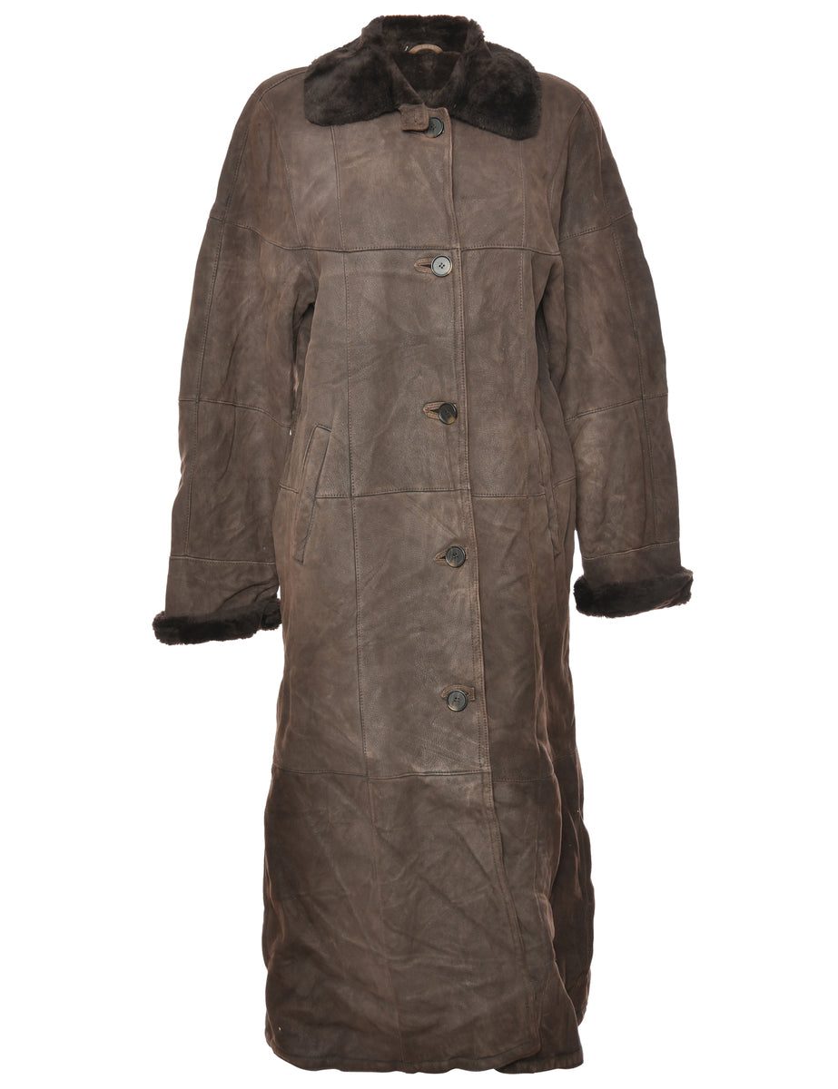 Shearling Lined Dark Brown Suede Coat - L