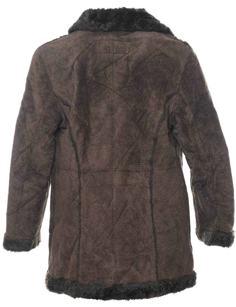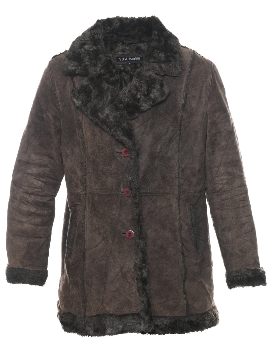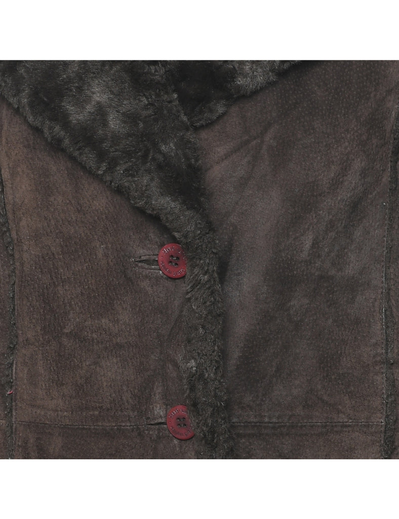 Single breasted coat. Comes in dark brown with faux fur lining and multiple pockets.