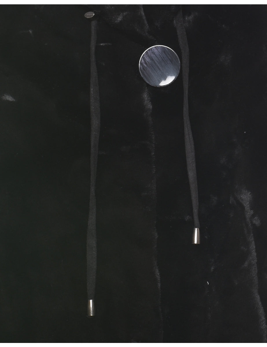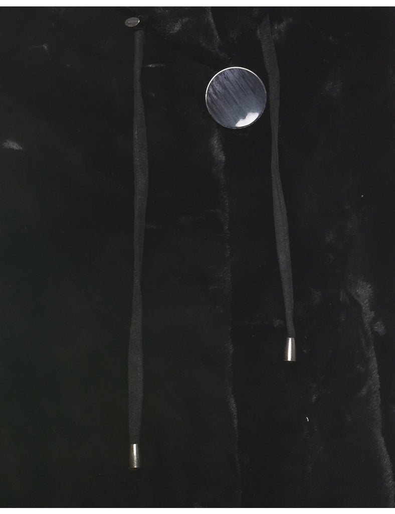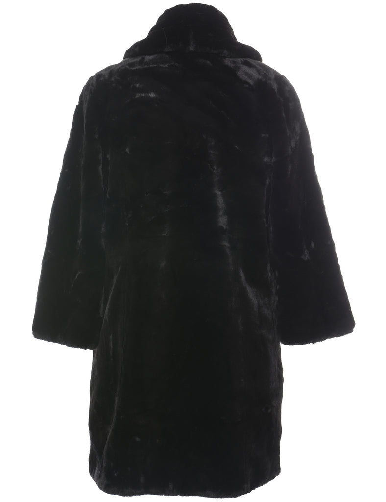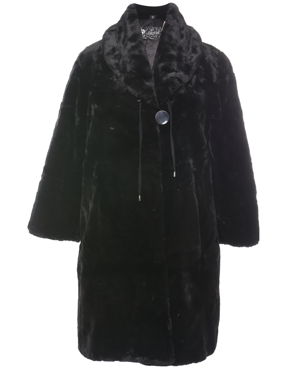 Single breasted faux fur coat in black with full lining and multiple pockets.