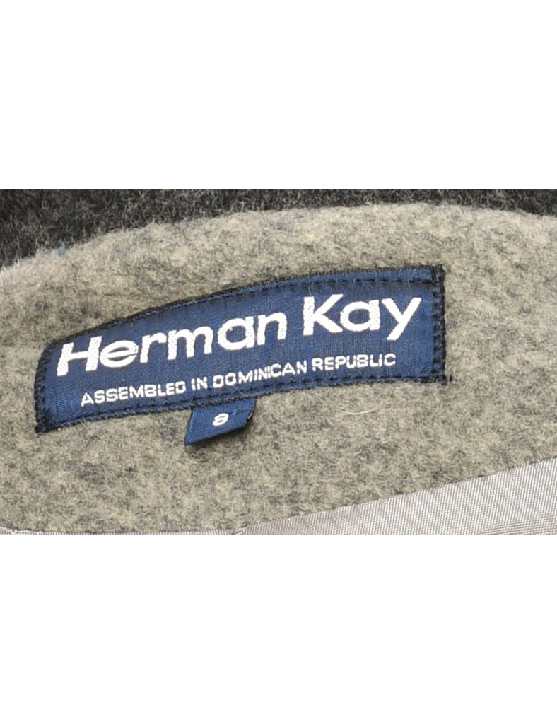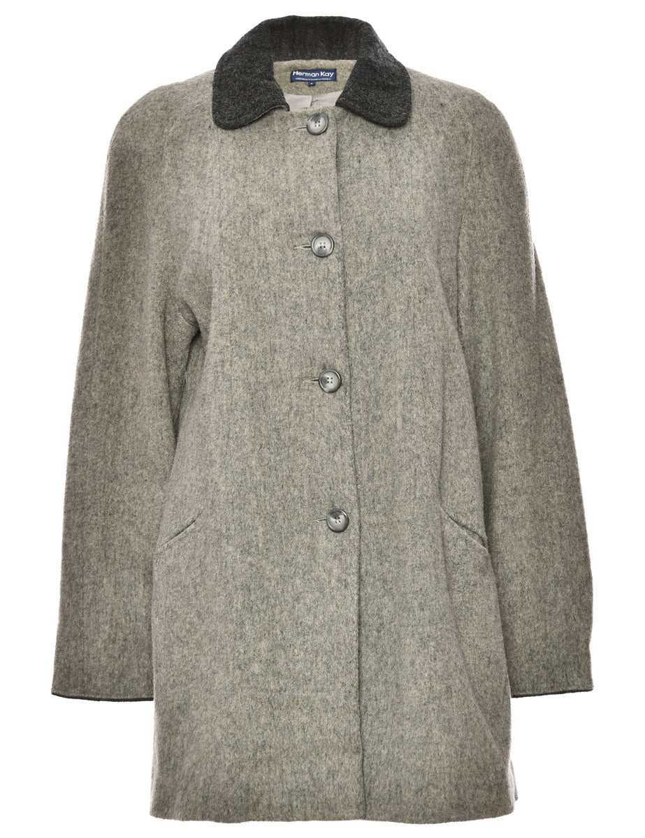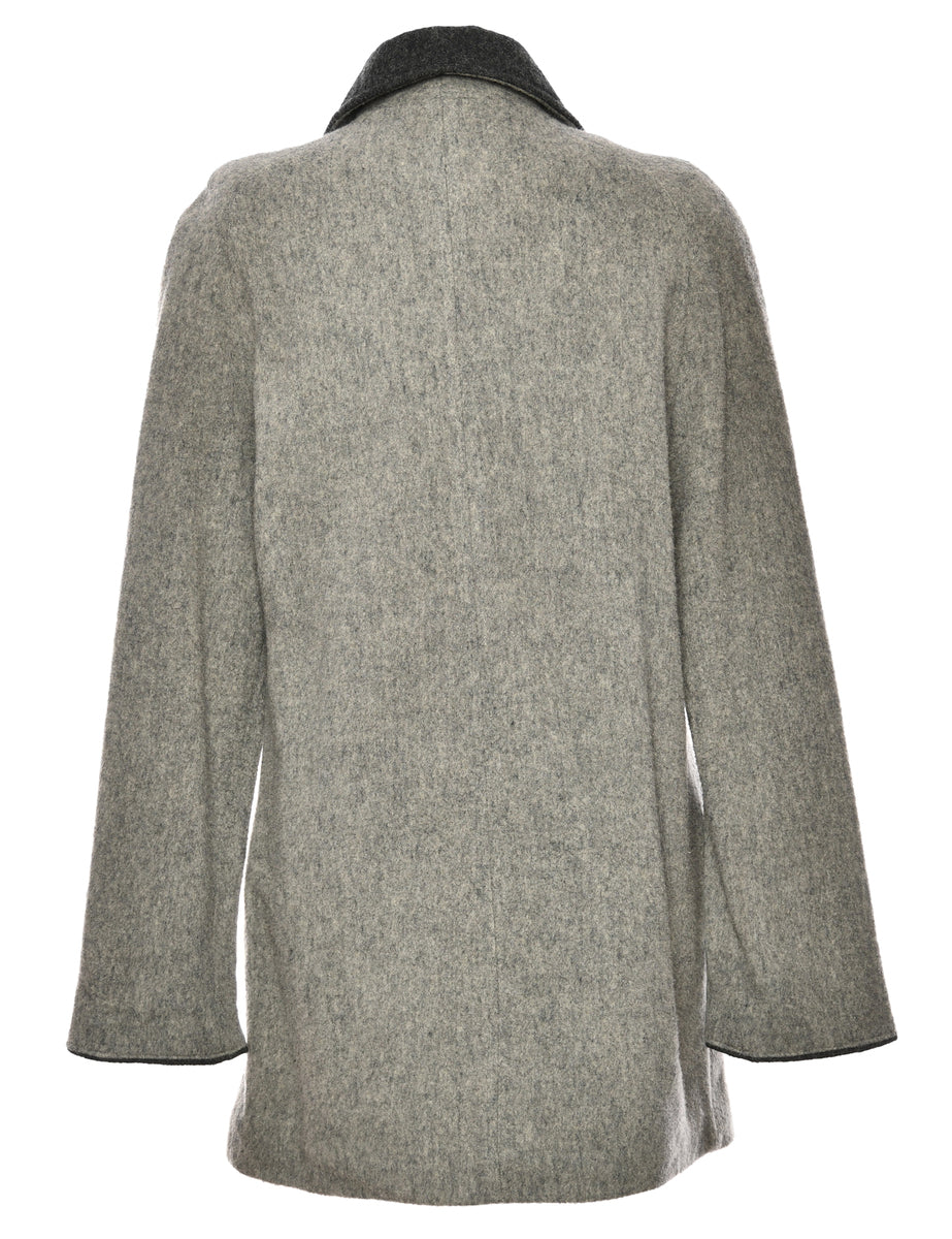 Single Breasted Grey & Black Contrast Wool Coat - L