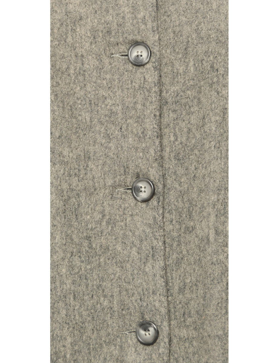 Single-breasted wool coat in grey & black complete with multiple pockets and a contrasting collar.