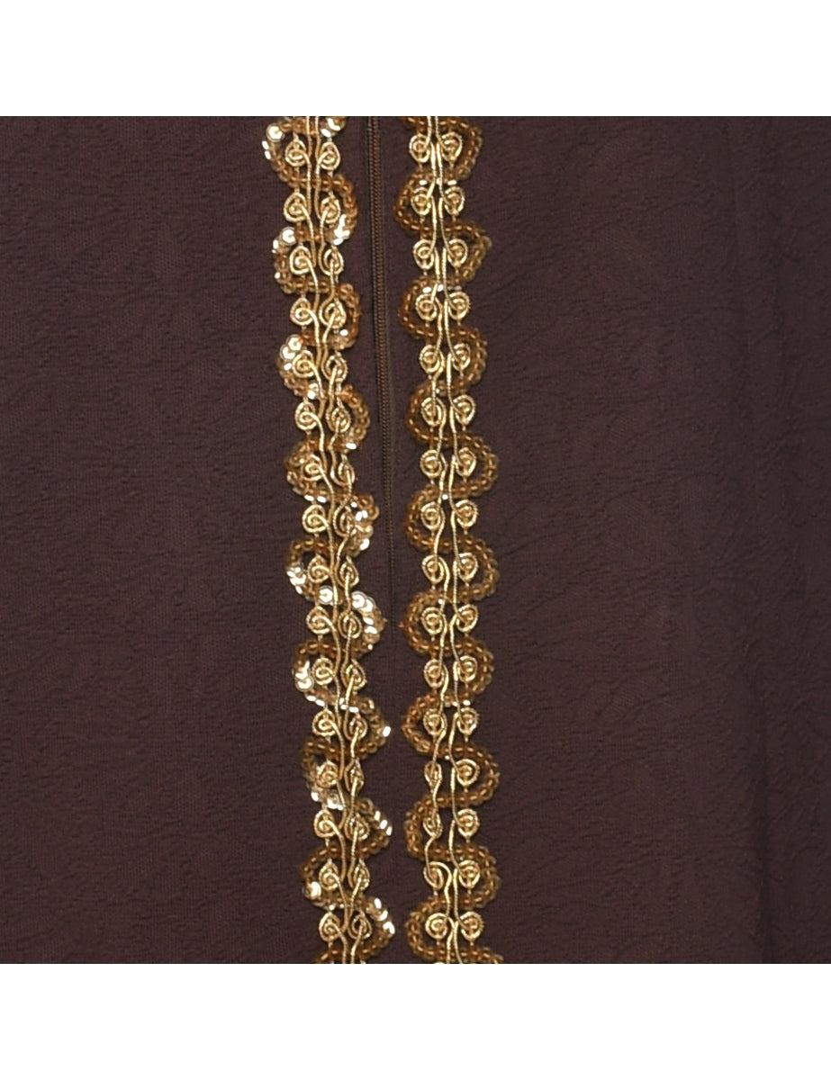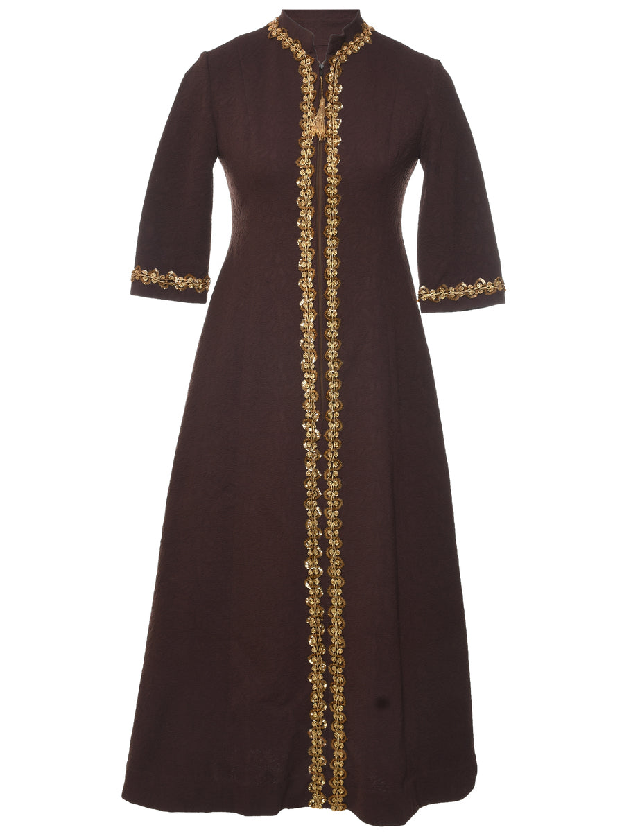 Sequined 1970s dress comes in dark brown.