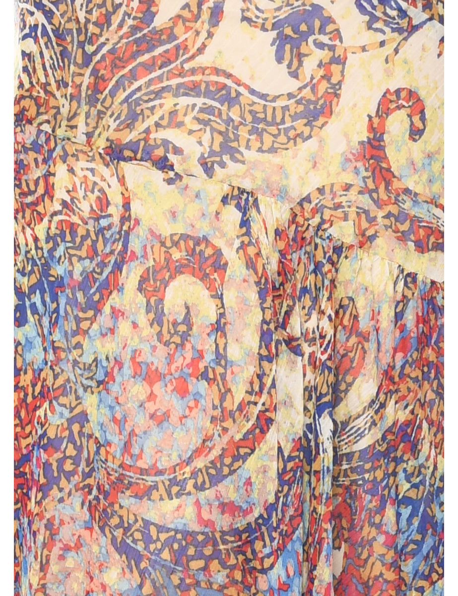 Sleeveless dress in multi-colour with a round neck and an asymmetric hem.
