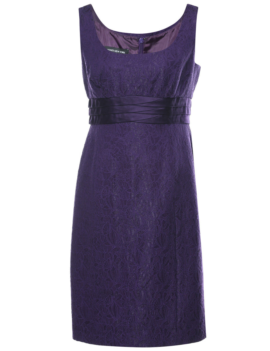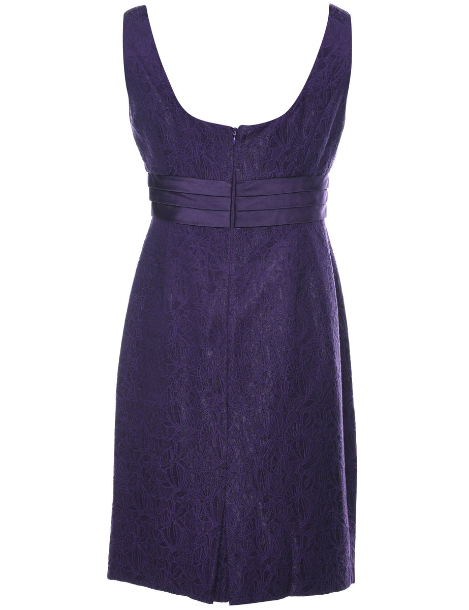 Floral lace evening dress in purple with full lining.