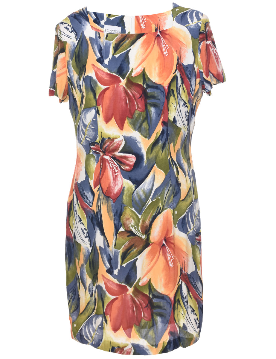 Vintage Floral Print Dress - L