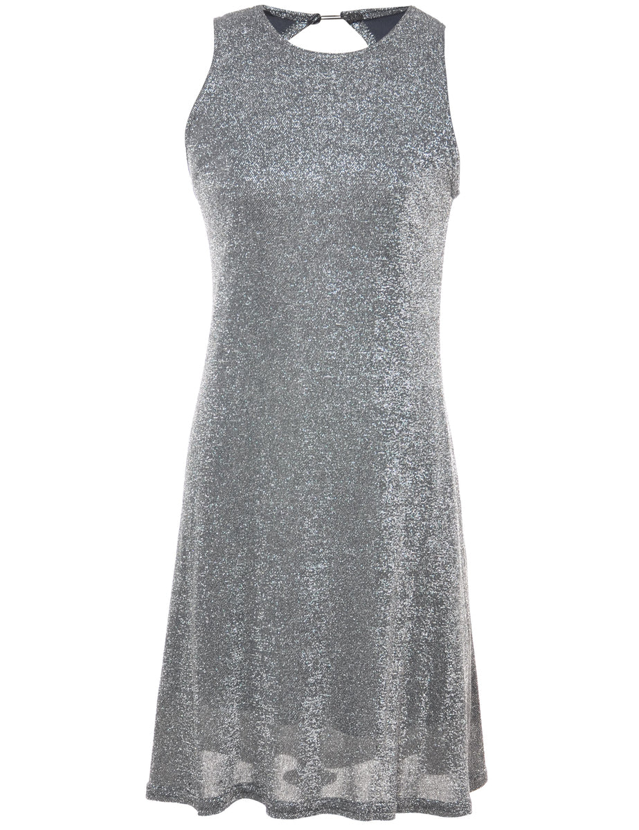 Lurex thread pattern evening dress. Comes in silver with full lining.