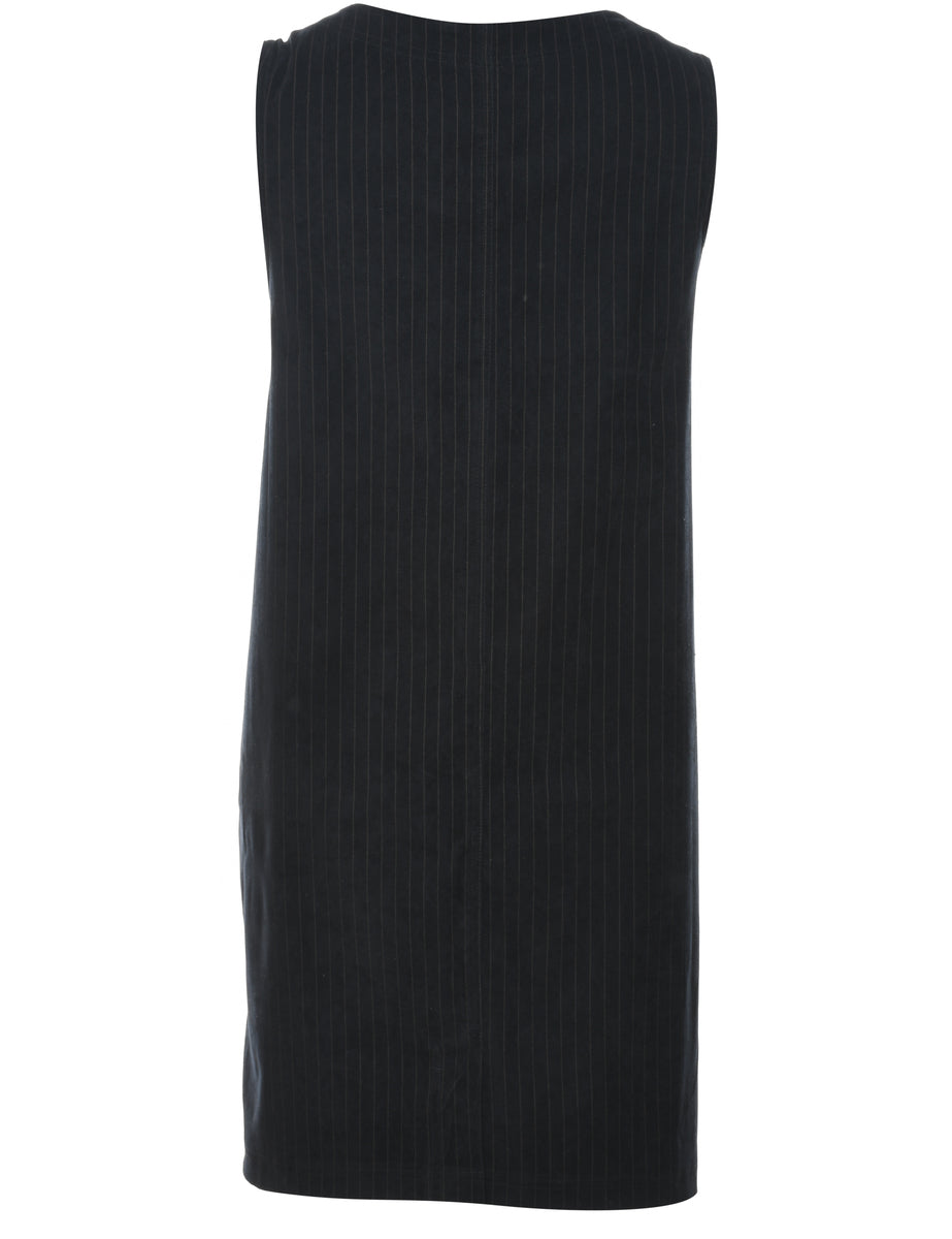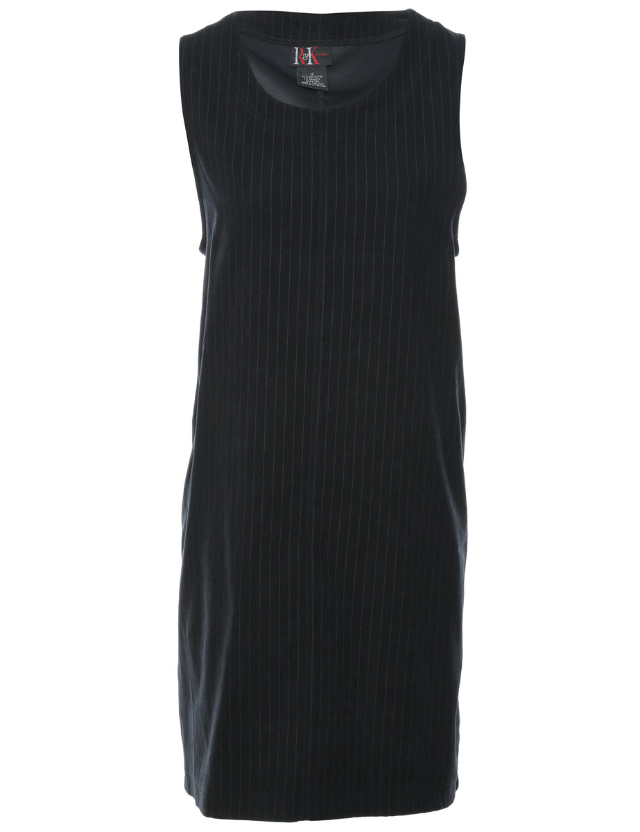 Pinstriped shift dress. Comes in black with a round neck.