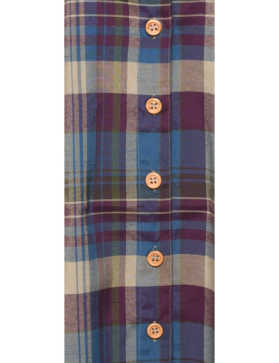 Vintage Checked Button-Front Navy & Purple Shirt Dress - XL