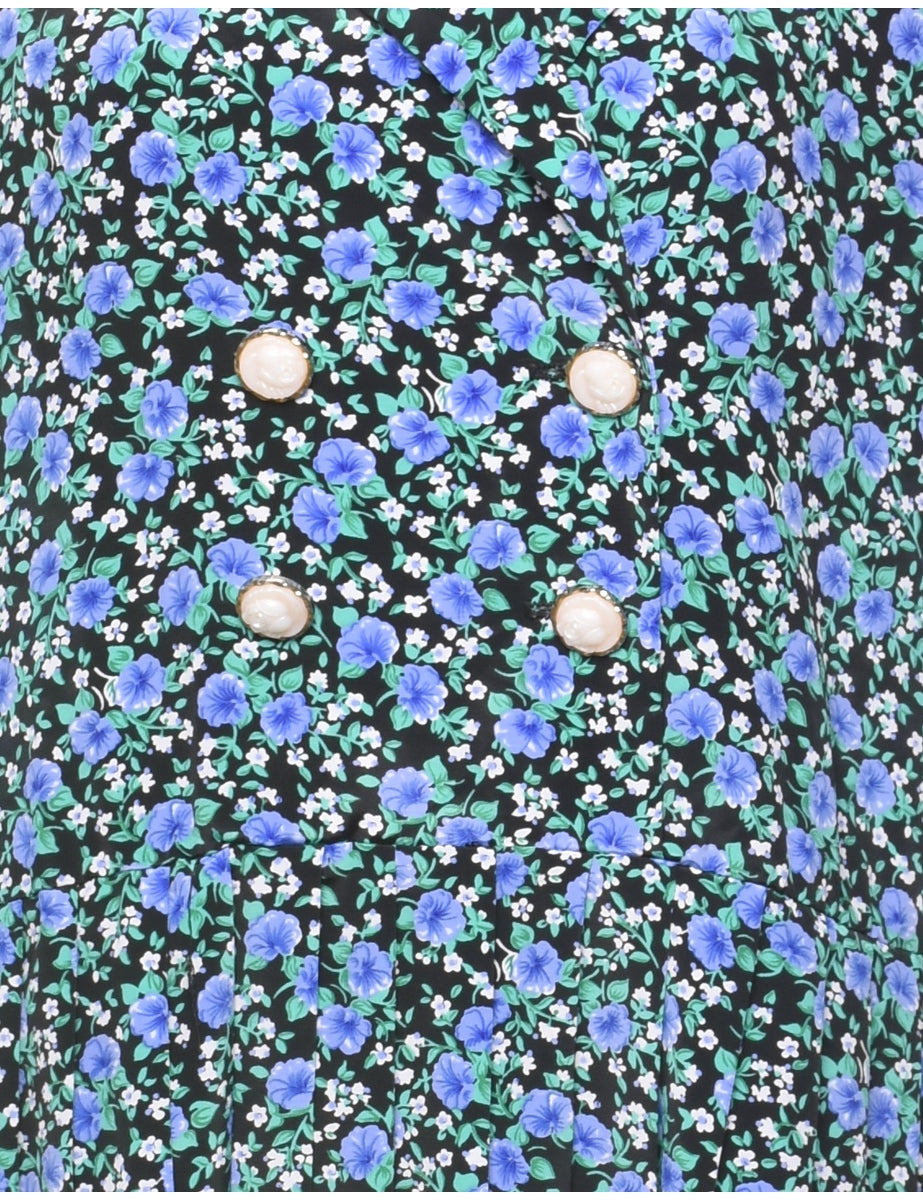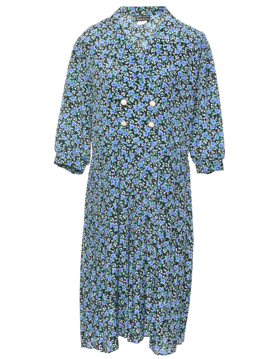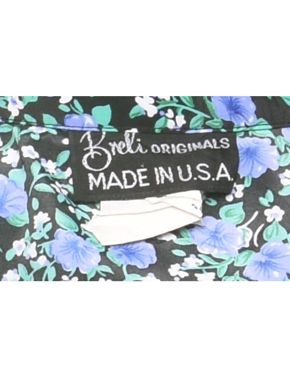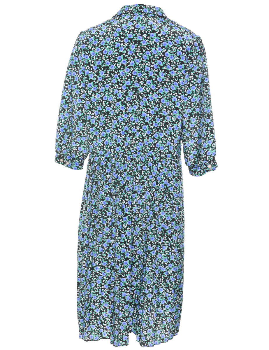 Vintage Floral Print Shirt Dress - L