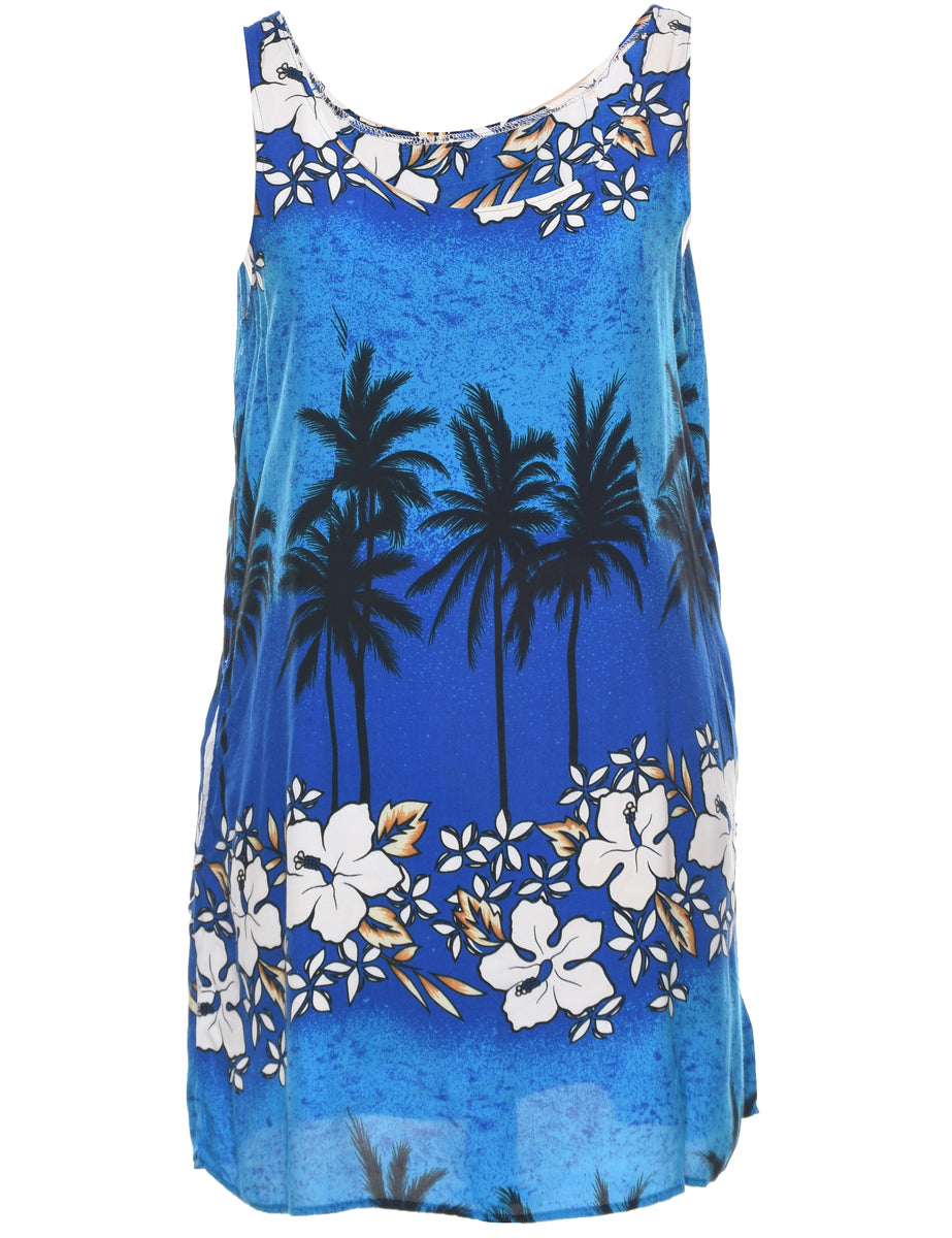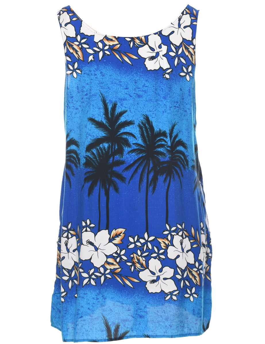 Sleeveless dress in multi-colour with hawaiian print, a round neck.