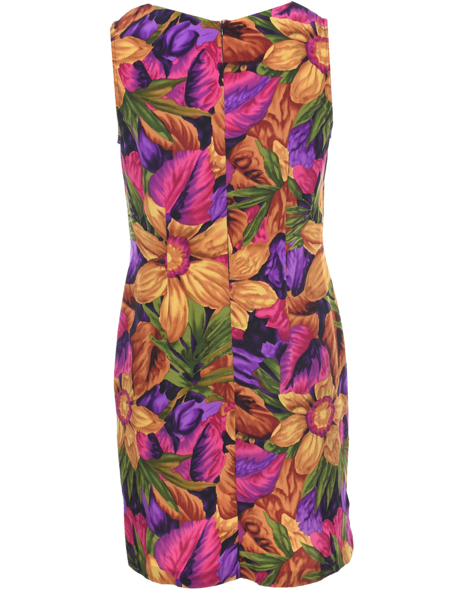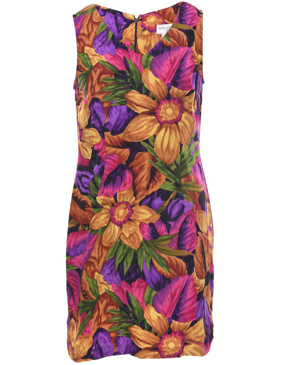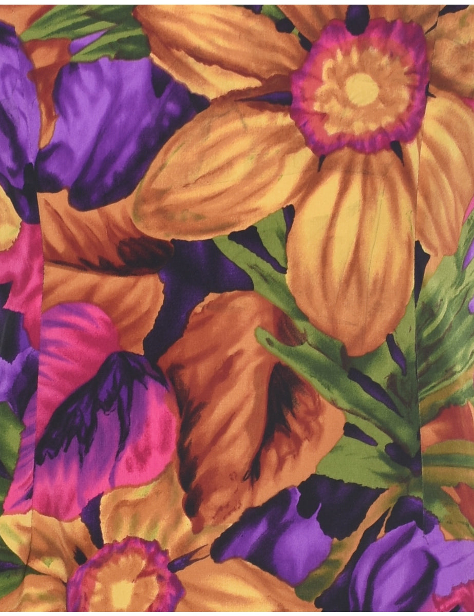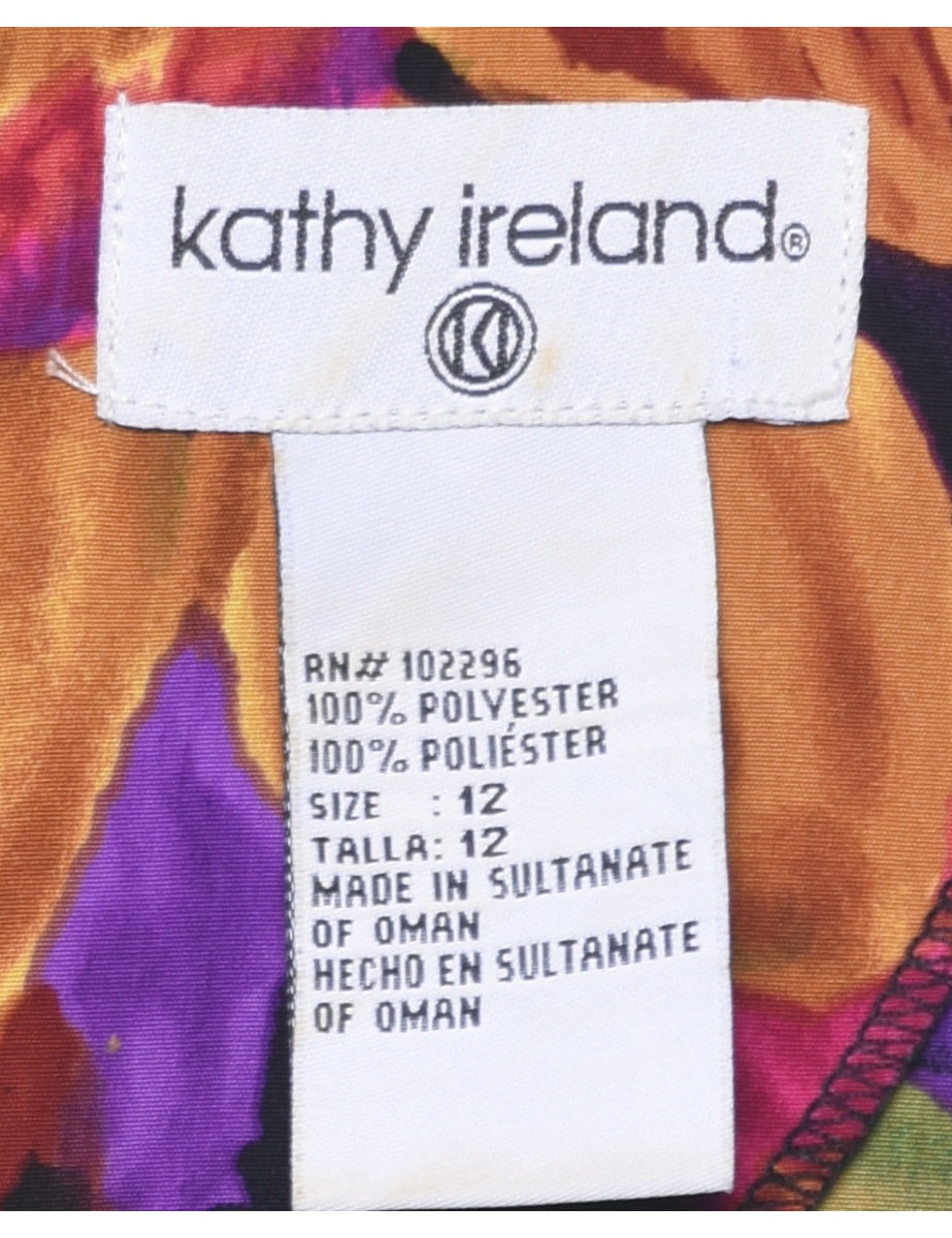 Floral print multi-colour Kathy Ireland dress with slit and v neck.