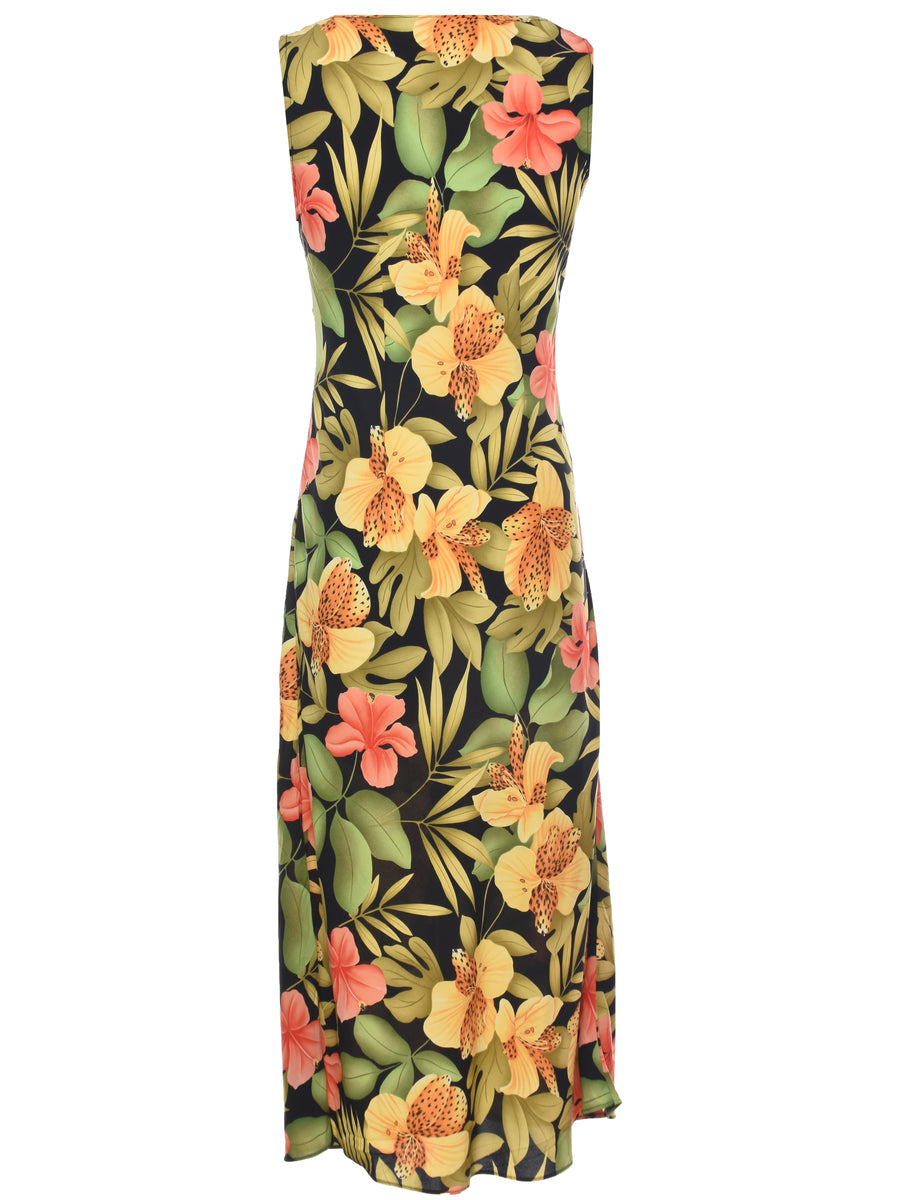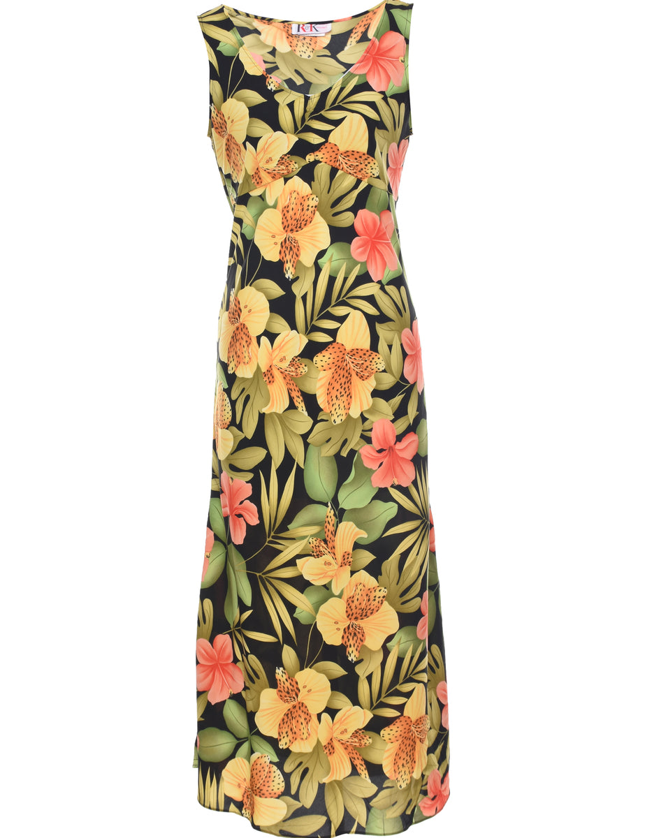 Leafy print maxi dress with floral pattern comes in multi-colour with v neck.