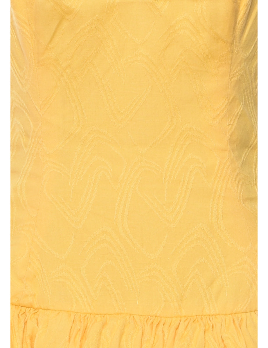 Strapless evening dress comes in pale yellow with ruched detailing.