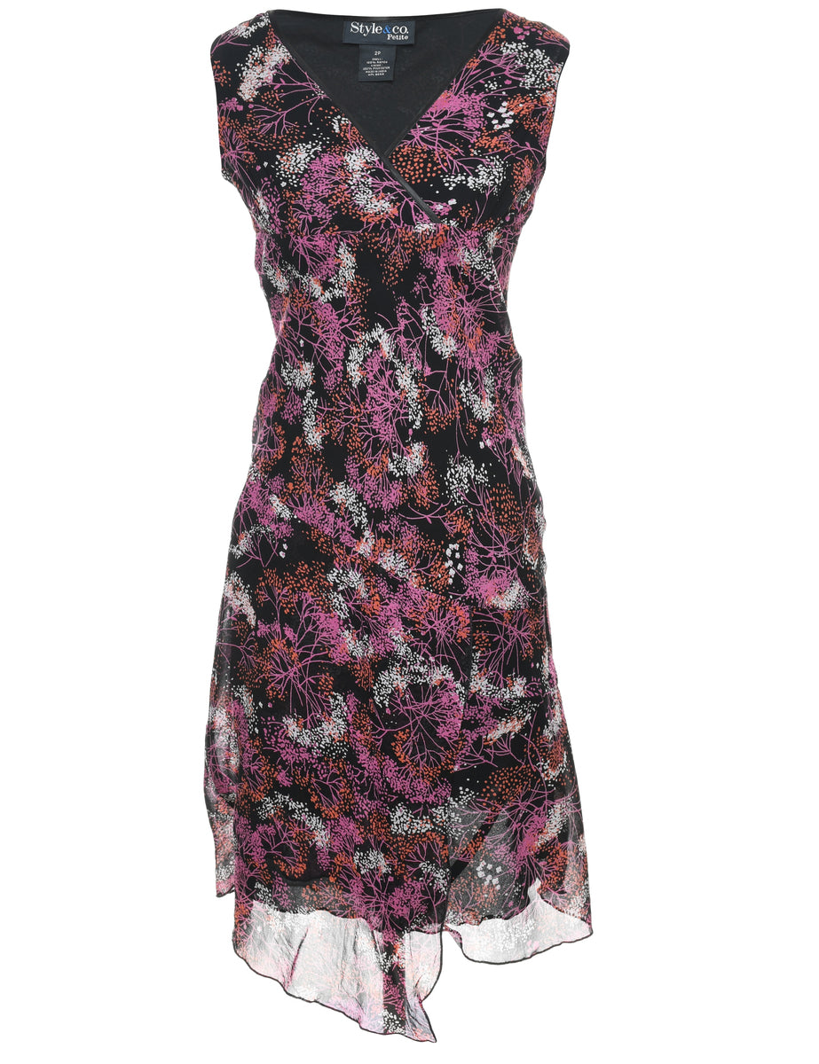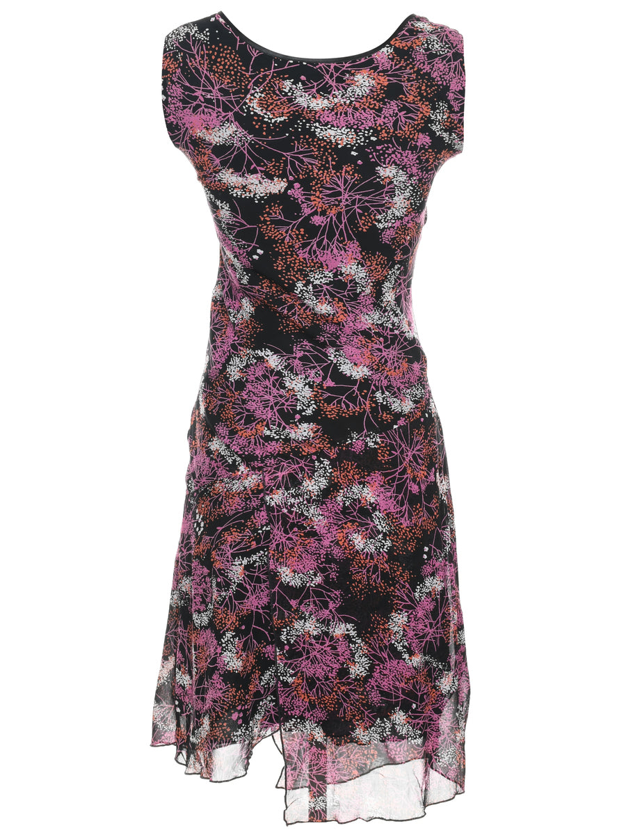 Dress in multi-colour with abstract pattern, full lining and v neck.