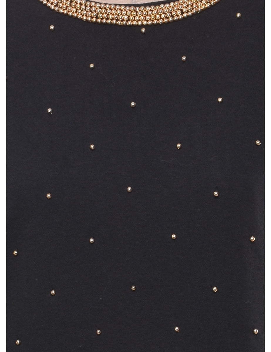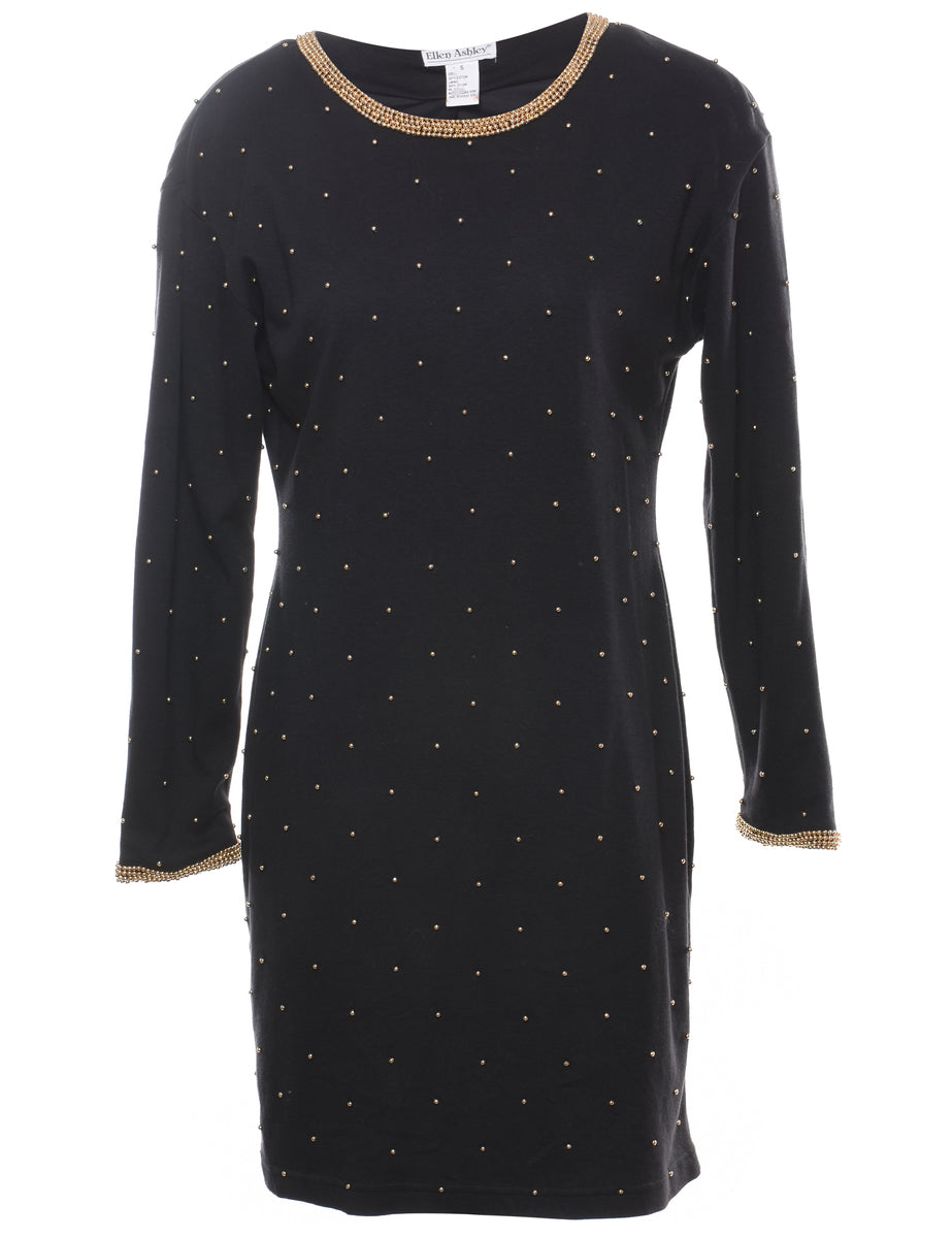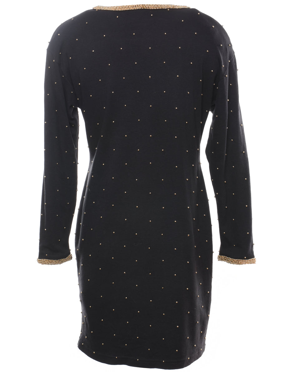Beaded evening dress. Comes in black with full lining and removable shoulder pads. The size label mentions S but based on the actual measurements we consider it a size M.
