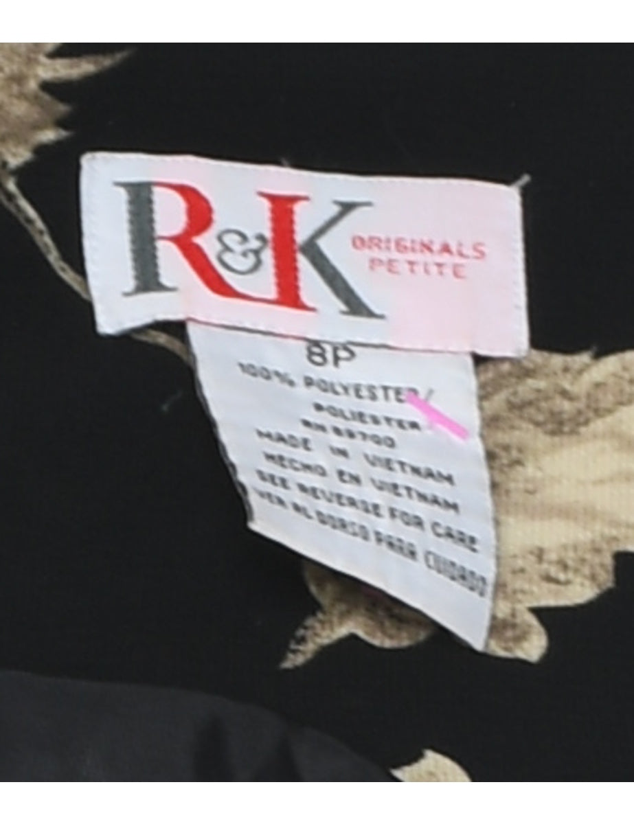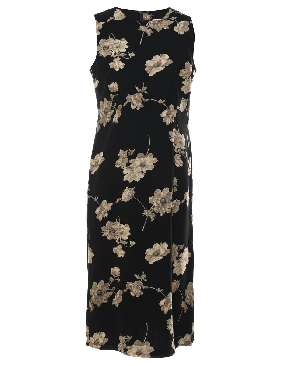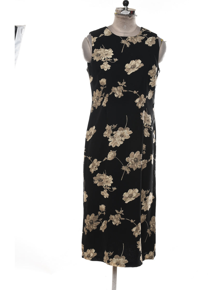 Vintage Black Floral Print Dress - M