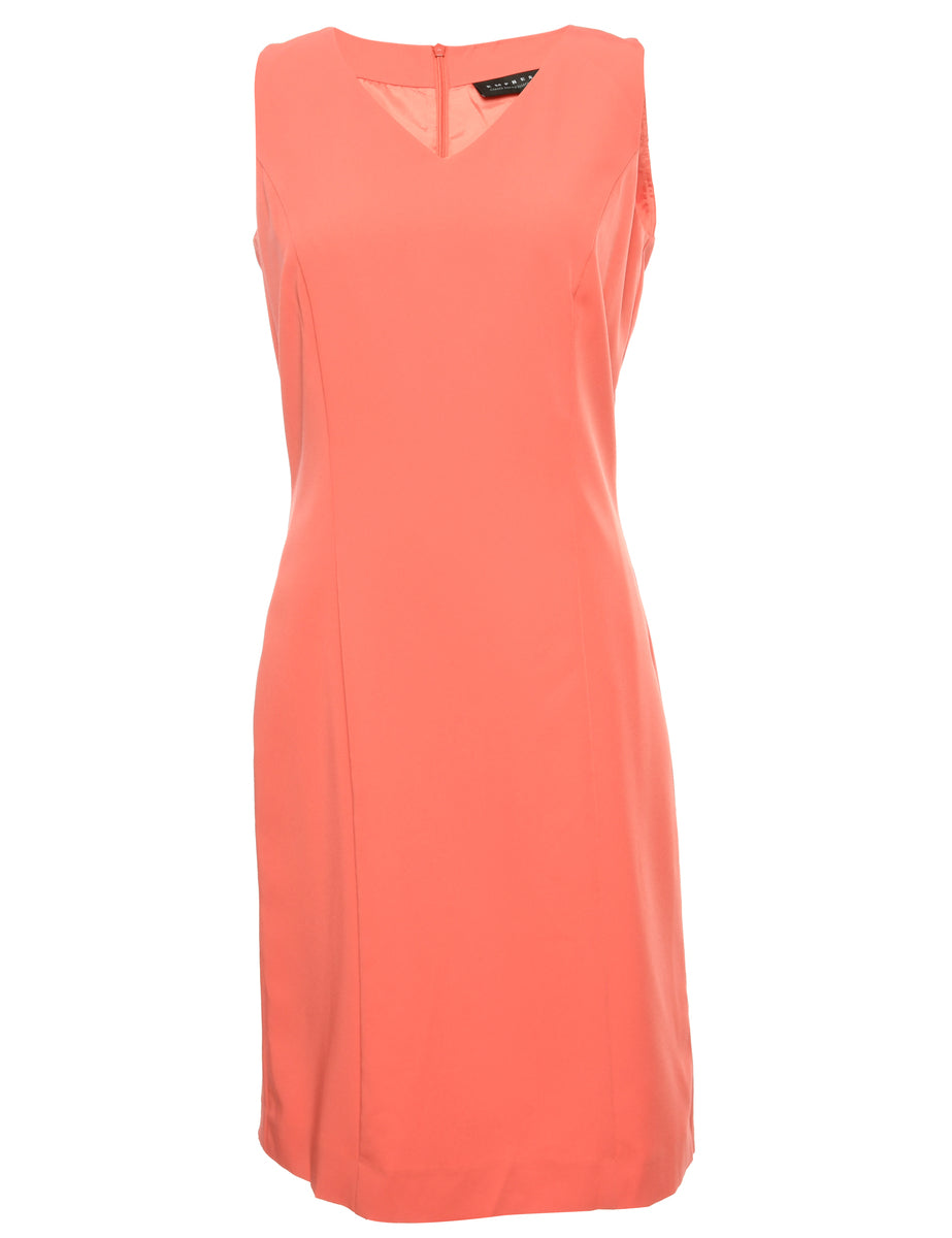 Vintage Bold Pastel Peach V-Neck Dress - M