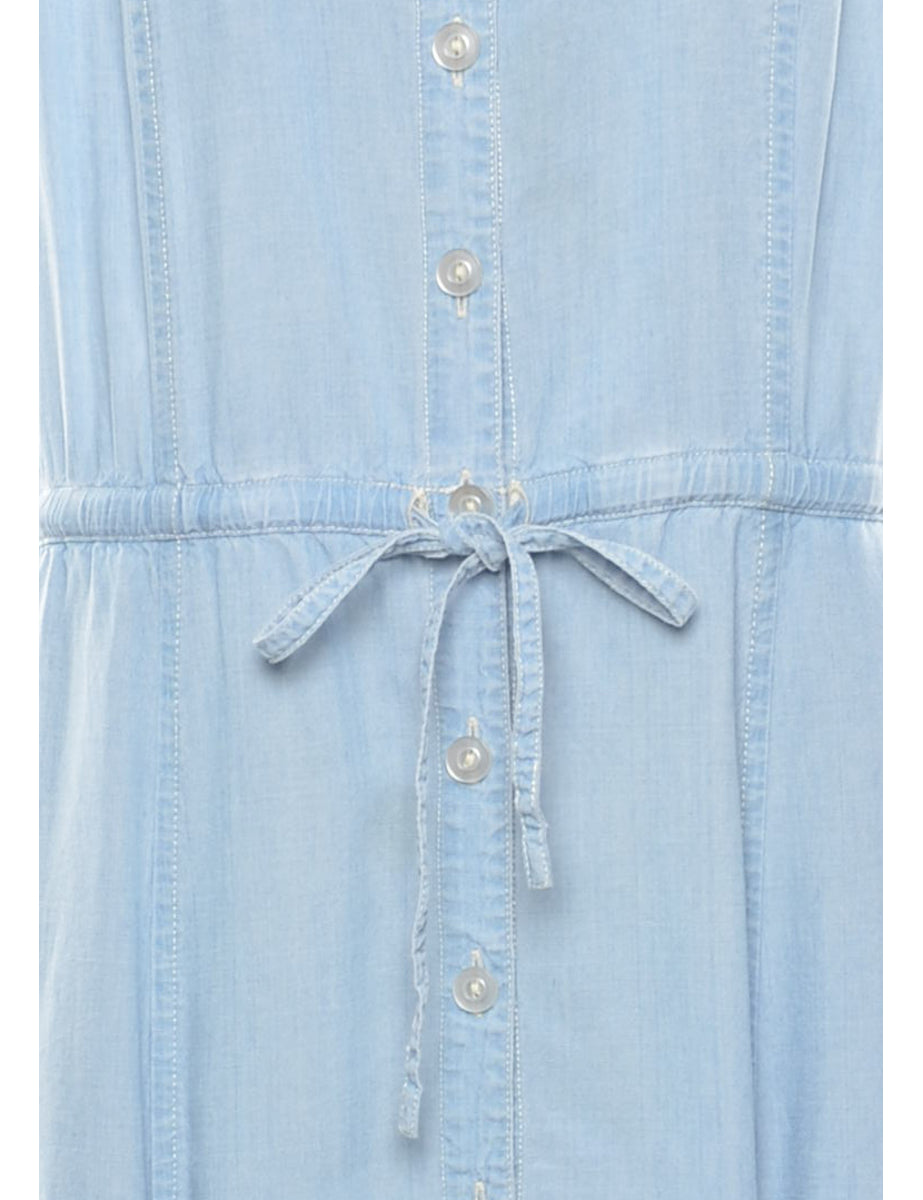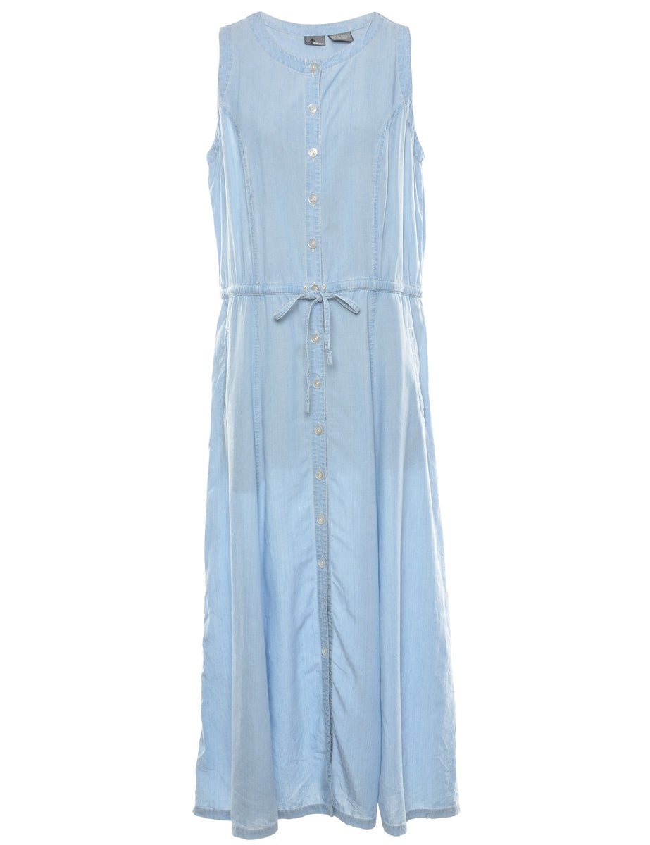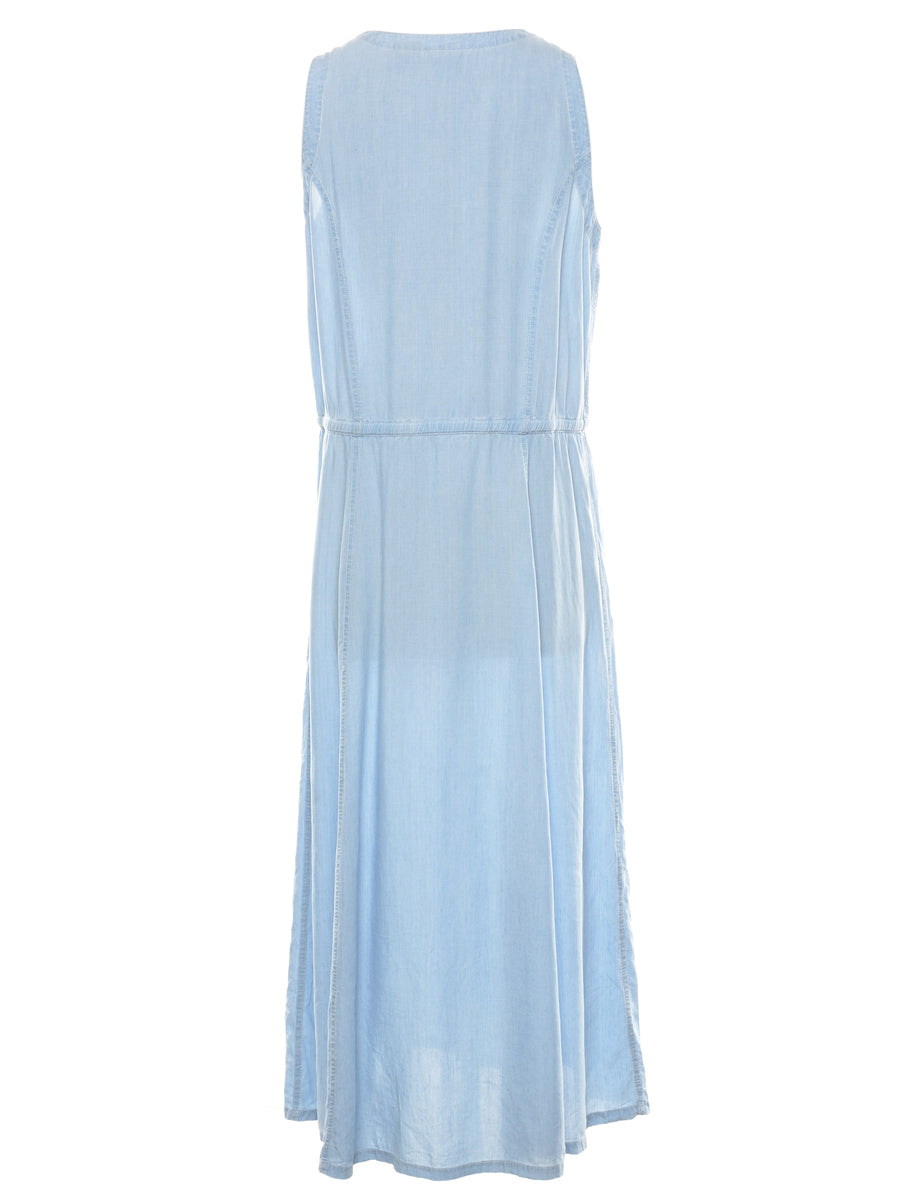 Button front maxi dress. Comes in light blue with a drawstring waist.