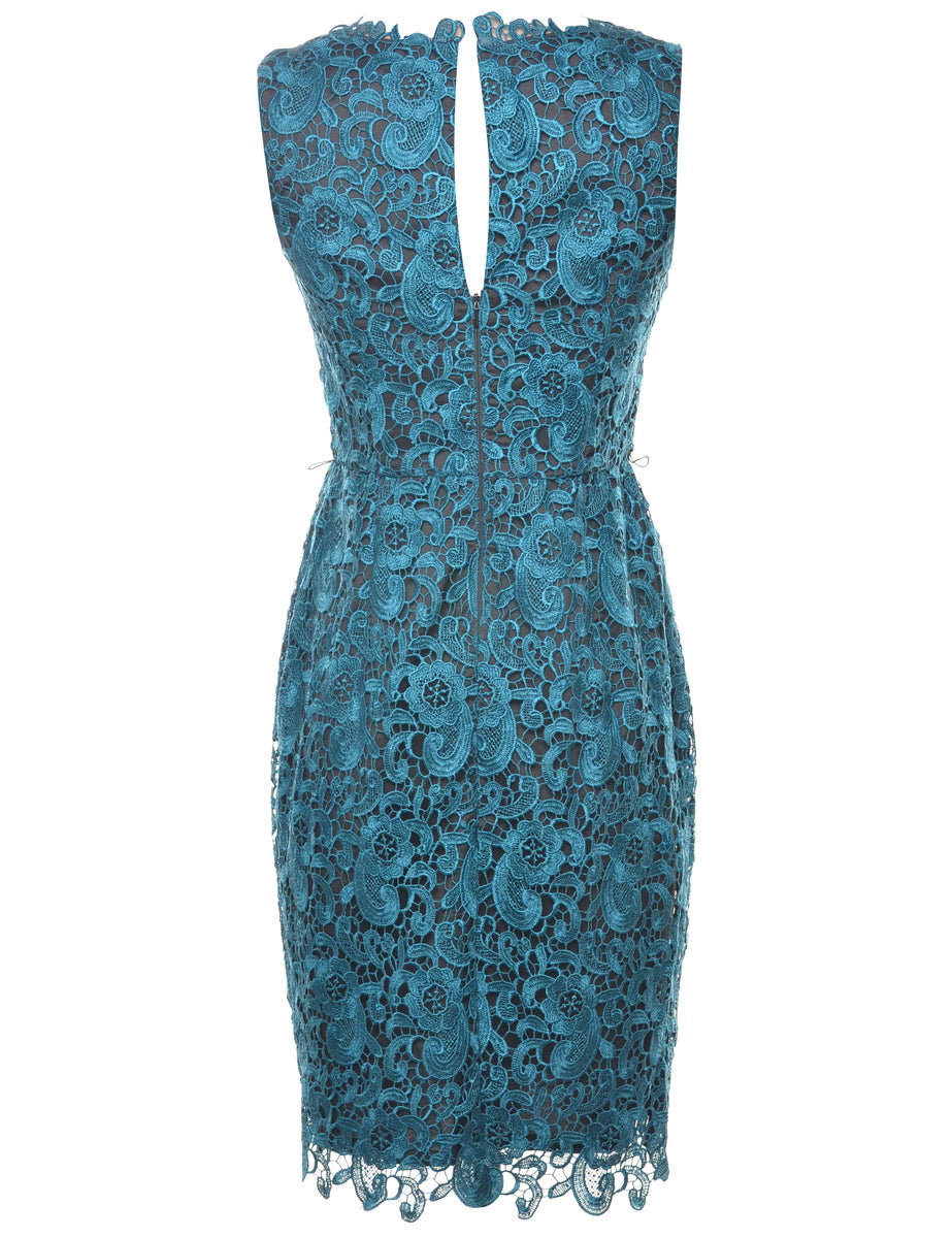 Floral lace evening dress in dark green with full lining and a pencil skirt.