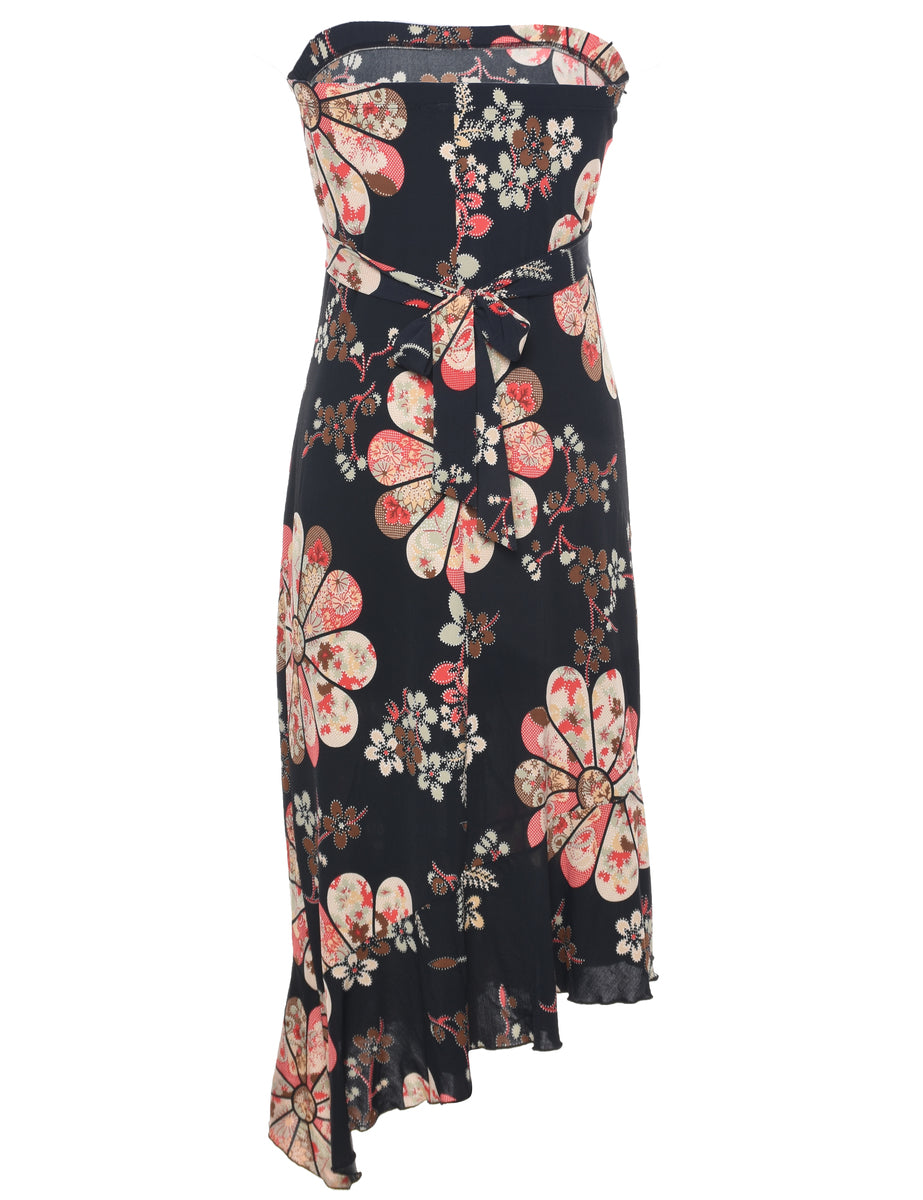 Strapless multi-colour dress with floral pattern, back tie.