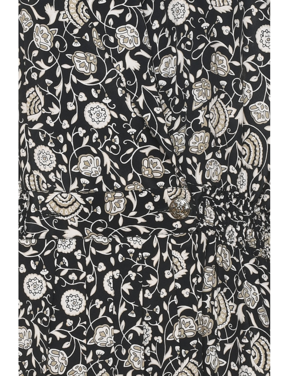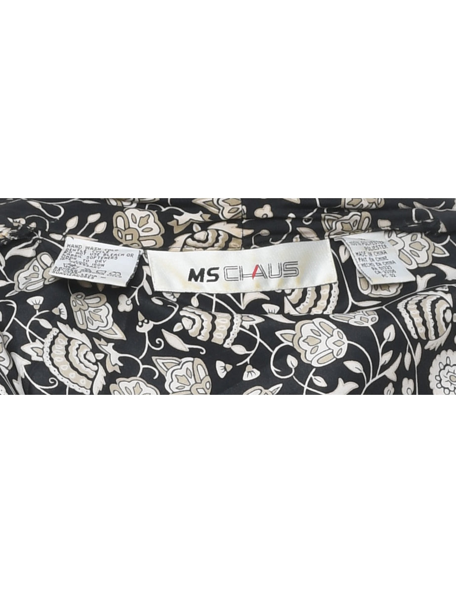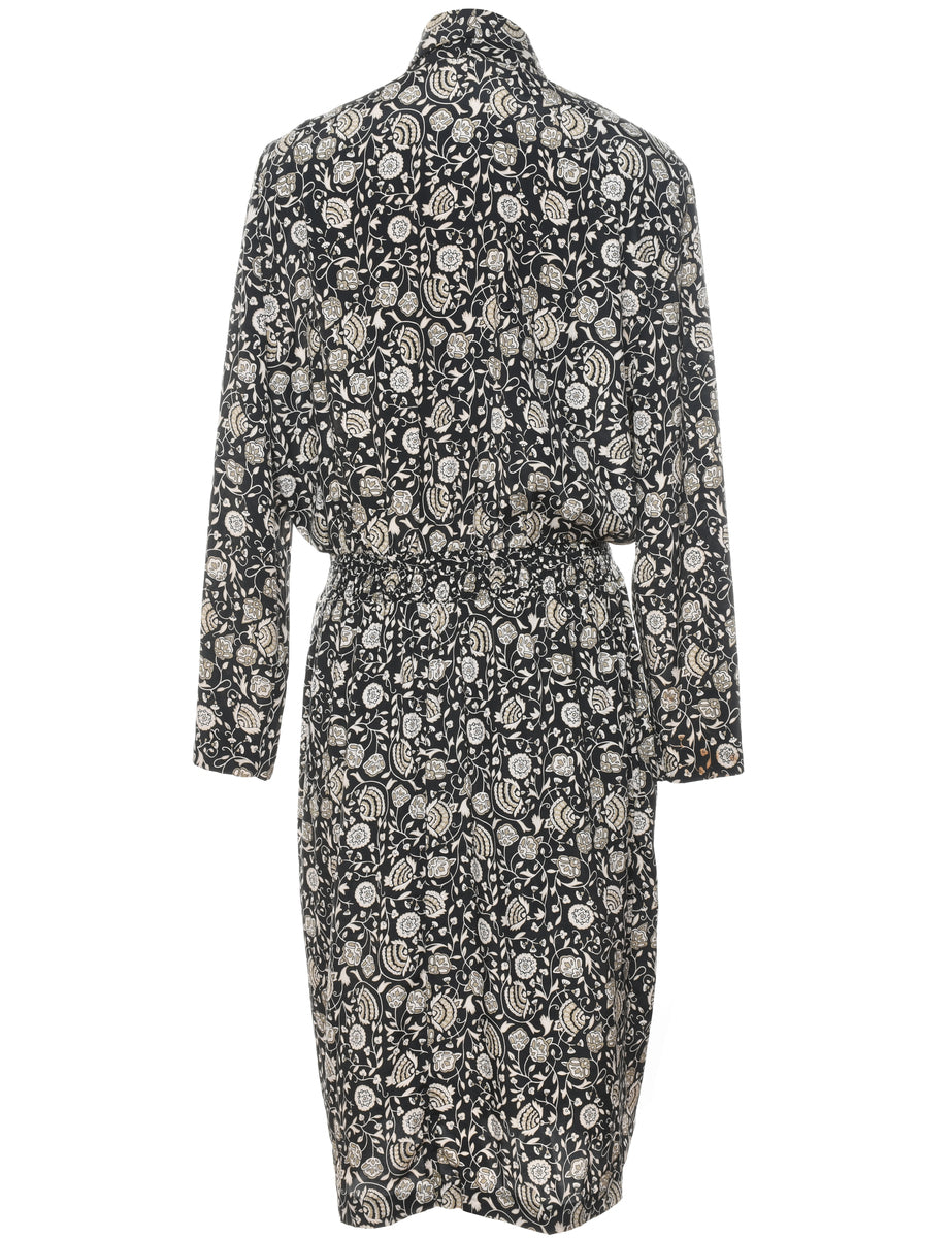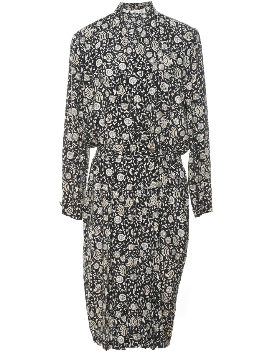 Vintage Floral Print Black & Grey Pleated Dress - M