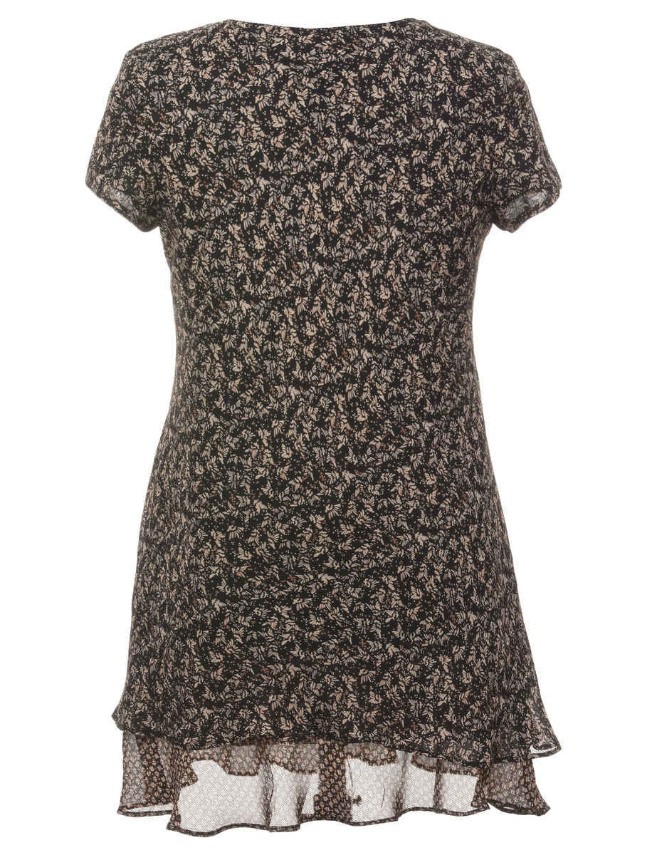Vintage Floral Print Black Mini Dress - XL