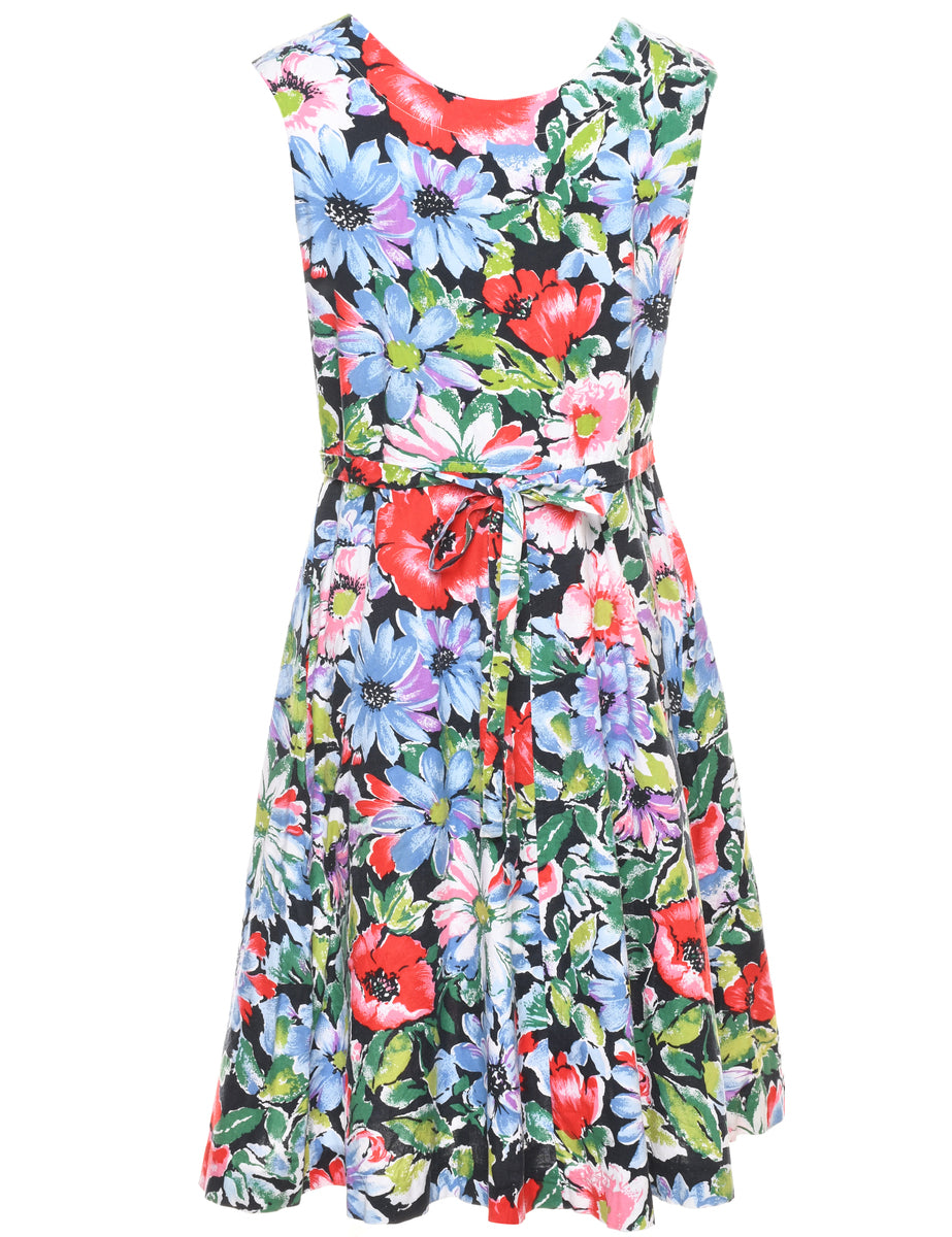 Floral print dress comes in multi-colour with back tie and a round neck.
