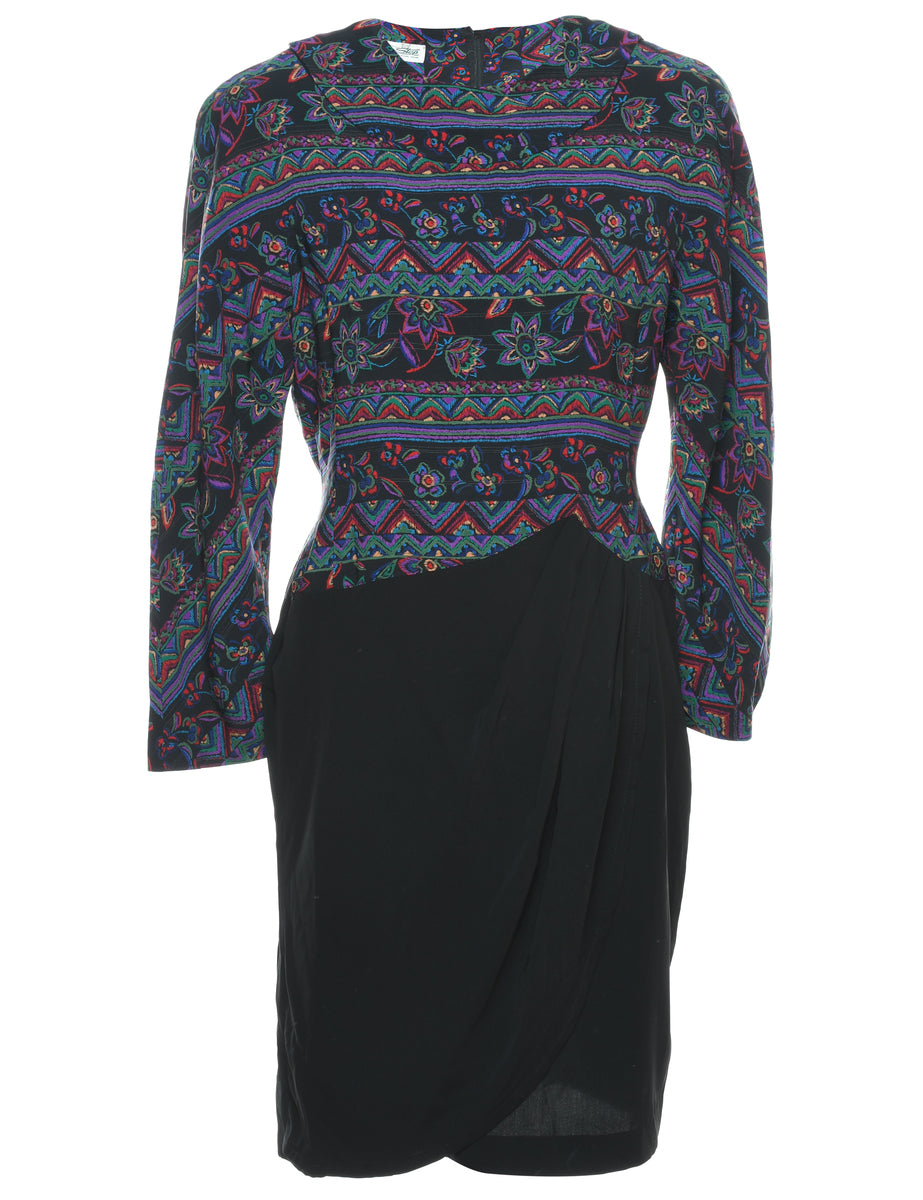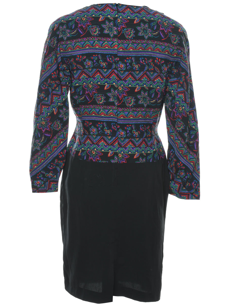Floral print multi-colour dress with a round neck and removable shoulder pads.