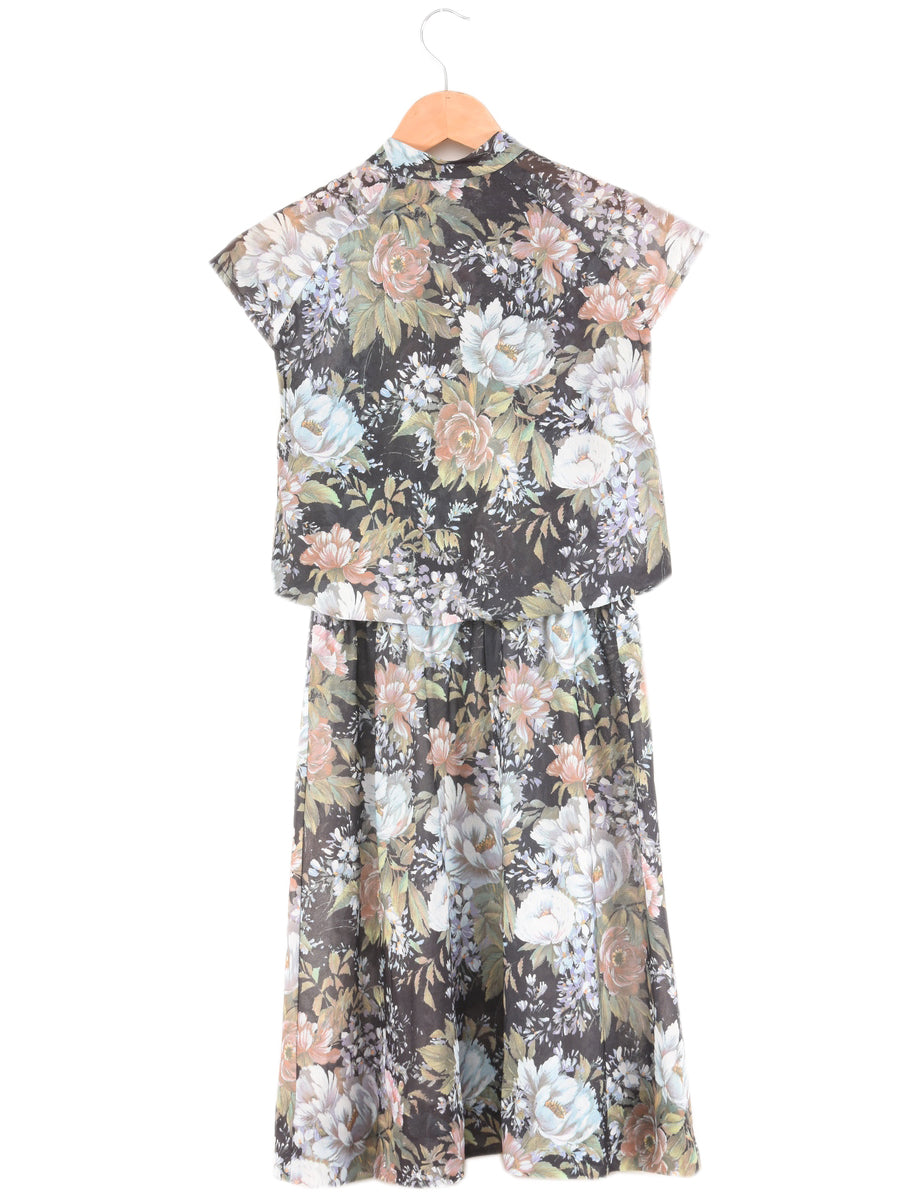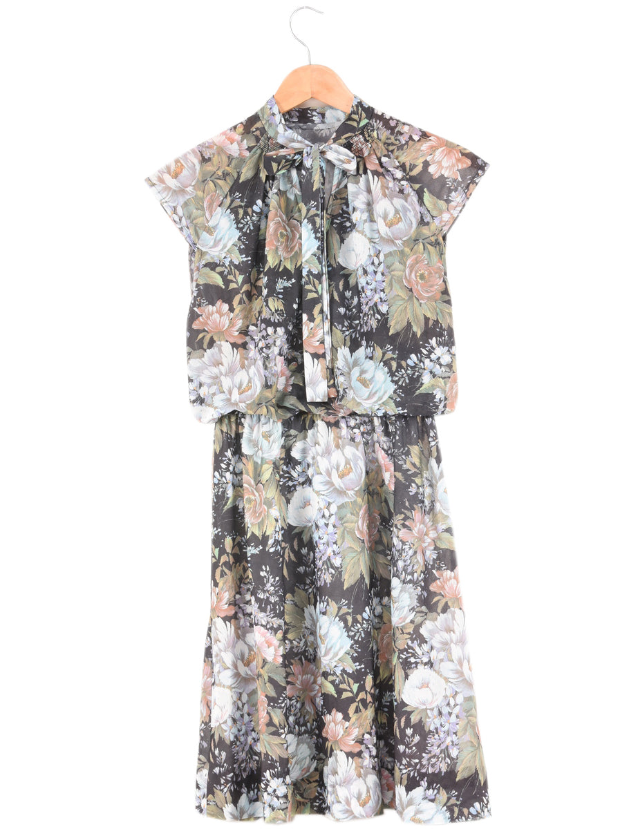 Floral print dress comes in multi-colour with a neck tie and an elasticized waist.