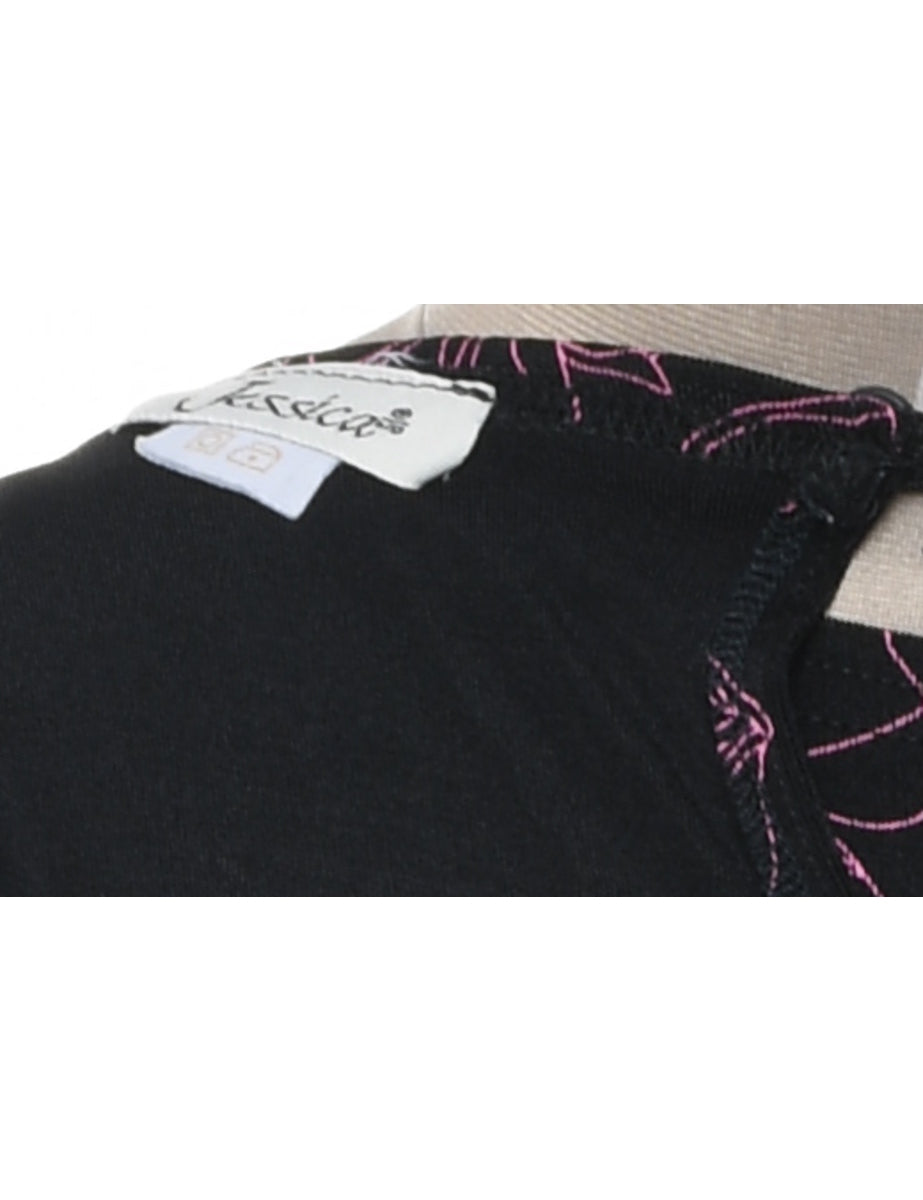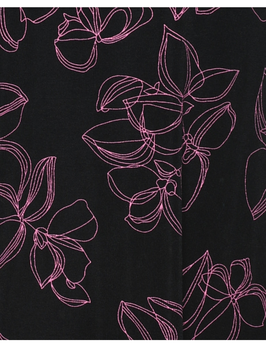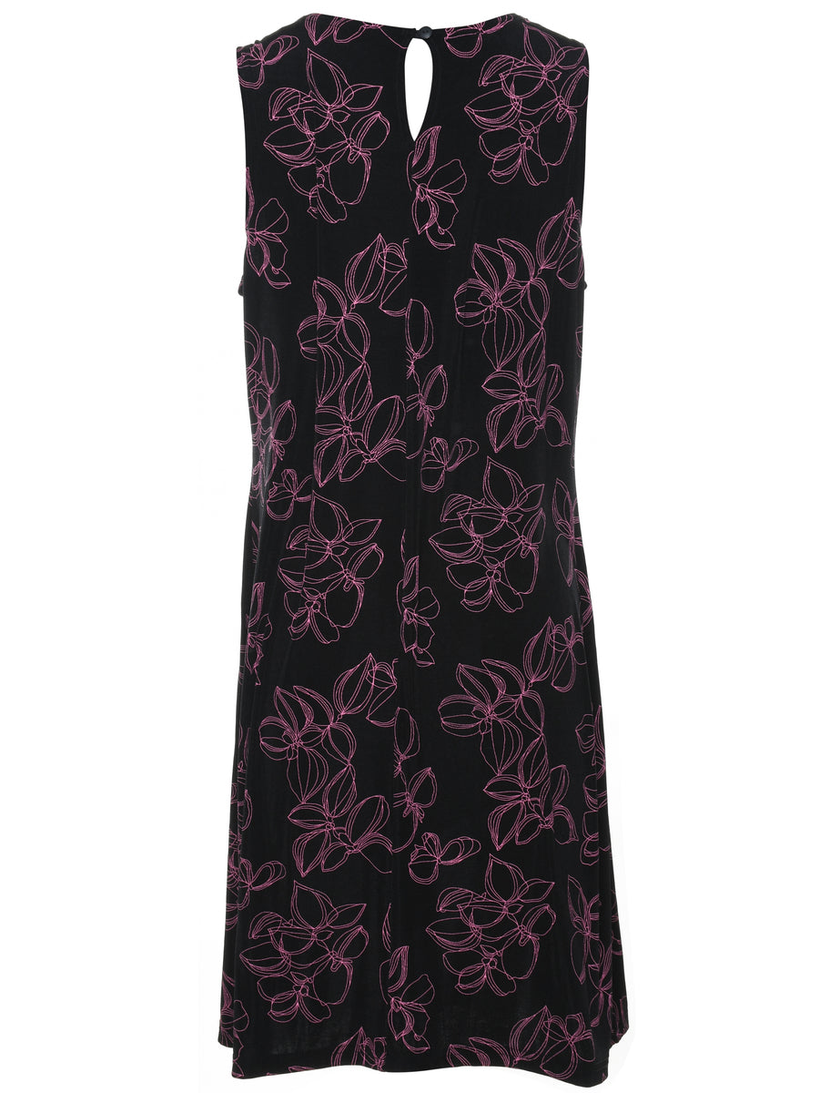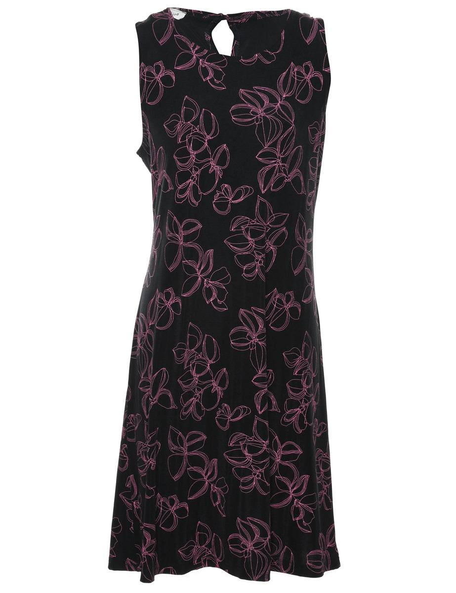 Floral print dress comes in black with a round neck.